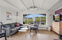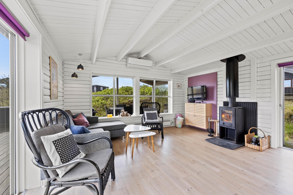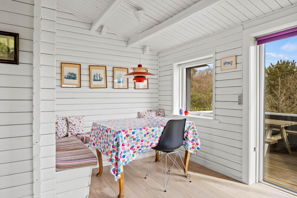 Im Wohn-/Essbereich sorgen die holzverkleideten Wände, in Kombination mit den großen Fenstern und dem hellen Holzfußboden dafür, dass man sich hier richtig wohlfühlen kann. Egal ob gemütlich auf der Couch entspannen oder ein Spiel am Esstisch spielen ? hier wird jeder die perfekte Ecke für einen schönen Urlaub finden.