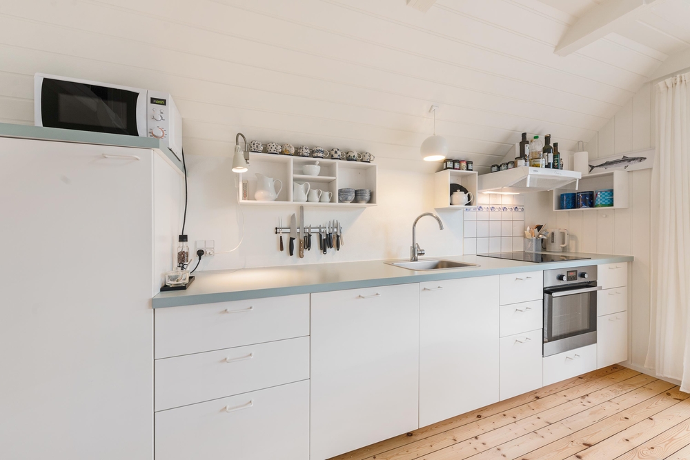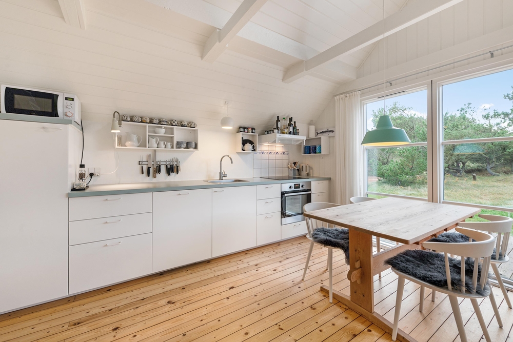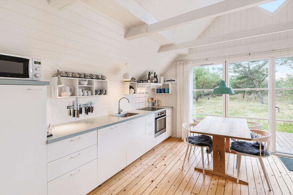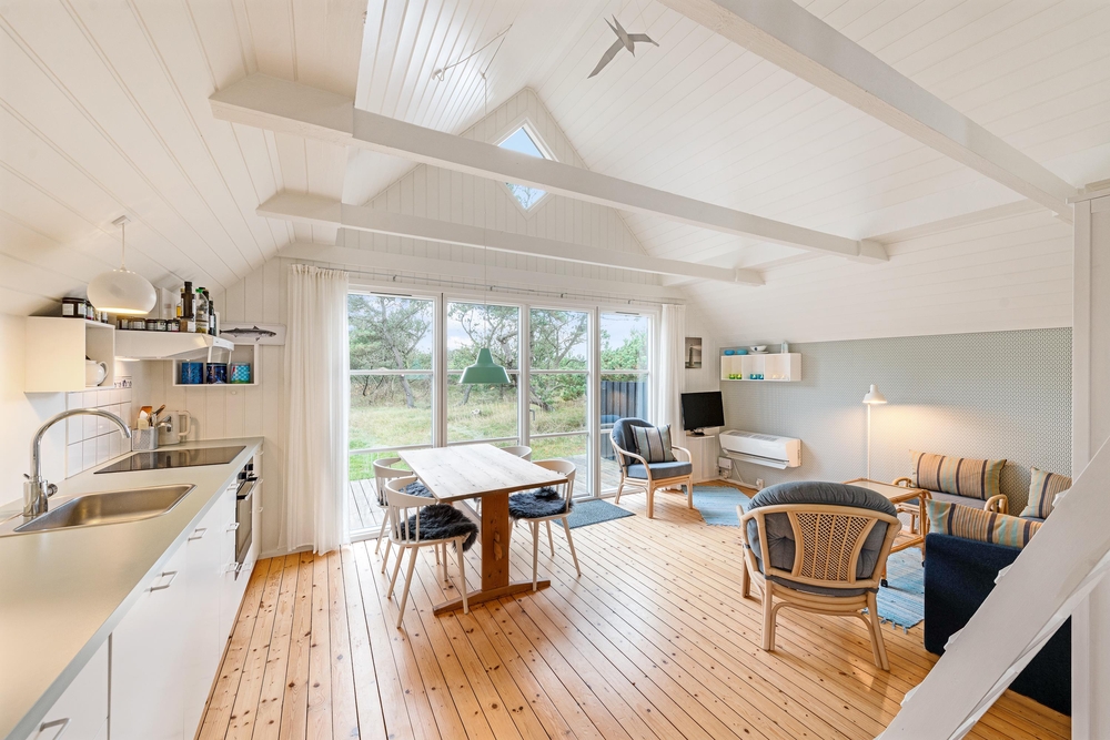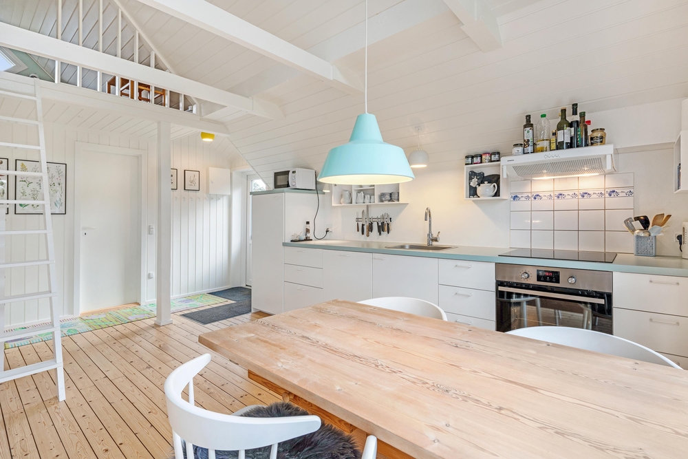 Dieses gemütliche Haus strahlt eine angenehme Atmosphäre aus und bietet Platz für bis zu 4 Personen. Es ist geradezu ideal für eine kleine Familie oder einen romantischen Urlaub zu zweit. Der helle geräumige Wohnraum, mit der gut ausgestatteten Küche lädt zu vielen schönen gemeinsamen Ferienstunden ein. Durch die hohe helle Decke und das Oberlicht wirkt der Innenraum viel größer, als es das Haus von außen ahnen lässt. Die großen Fensterpartien sorgen dafür, dass die Räumlichkeiten angenehm lichtdurchflutet sind. Das Badezimmer wurde in 2017 renoviert.