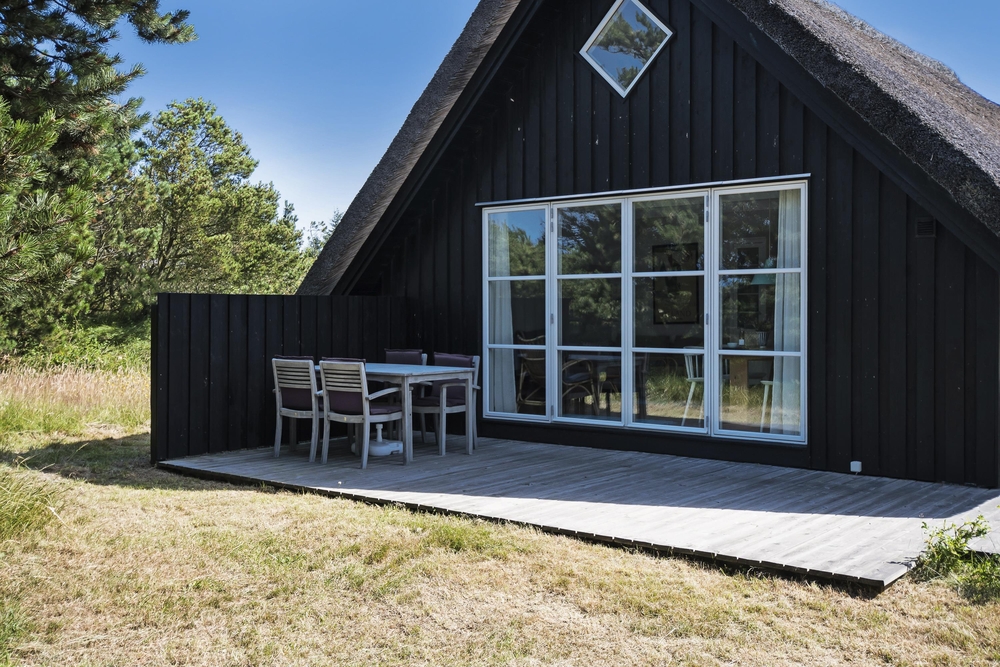 Vom Wohnraum aus habt ihr Zugang zur schönen, teilweise abgeschirmten Terrasse, die mit guten und bequemen Gartenmöbeln ausgestattet ist. Das ganze Grundstück ist von Bäumen eingerahmt, die einerseits einen guten natürlichen Sichtschutz bilden und zum anderen vor dem teilweise rauen Westwind schützen.