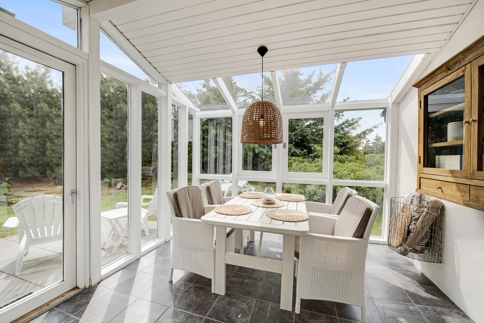 Der charmante Wintergarten sorgt dafür, dass Ihr die schöne Natur ausserhalb bei Wind und Wetter bewundern könnt. Es gibt eigentlich nichts gemütlicheres, als bei einem Kartenspiel und heissem Tee drinnen zu sitzen, während der Regen prasselt und der Wind pfeift.