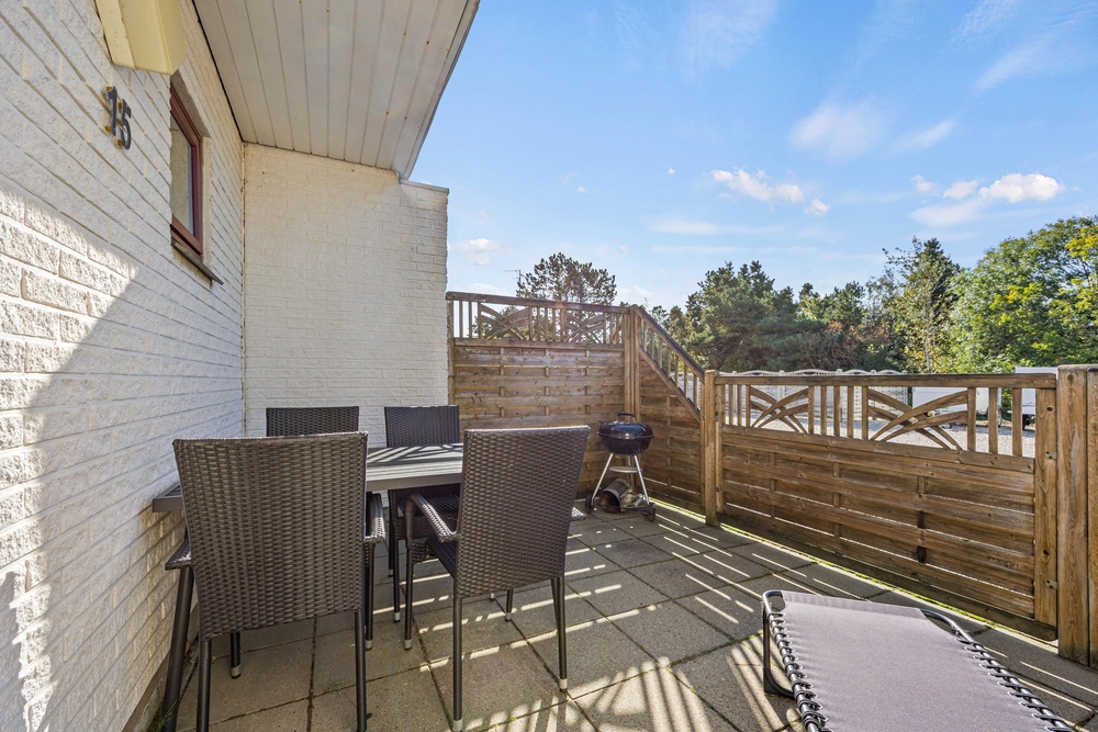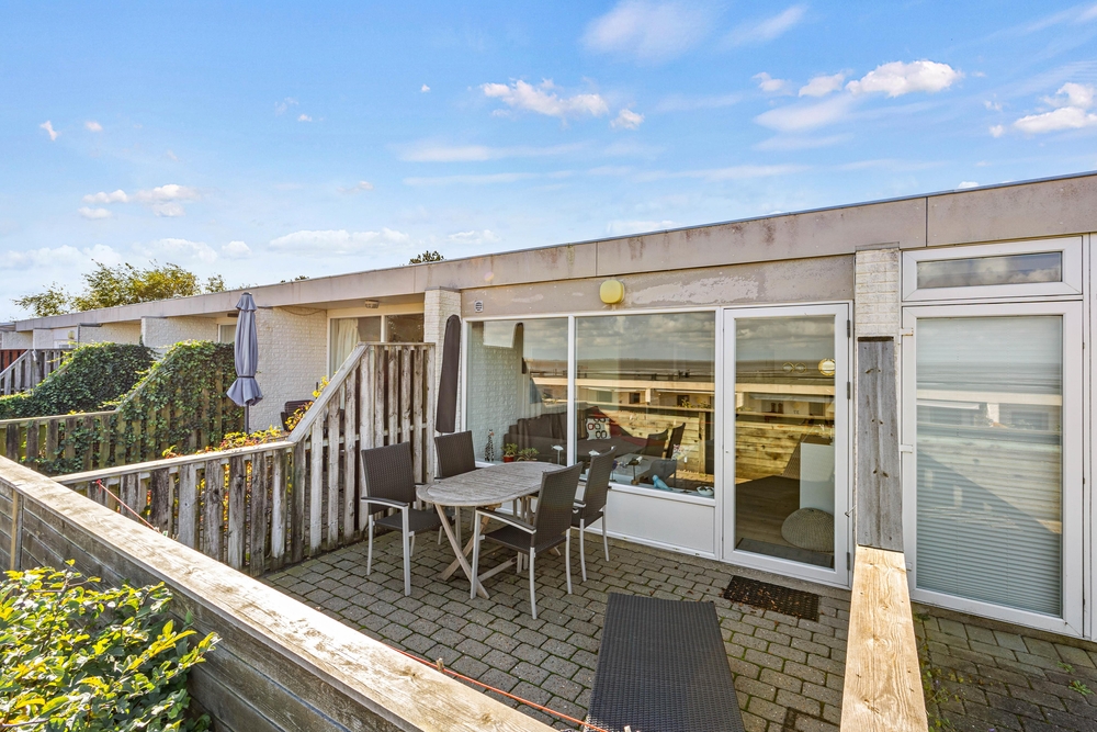 Durch die Glastür der Panorama-Fensterfront im Wohnraum gelangt ihr direkt hinaus auf die nach Osten ausgerichtete Terrasse. Auf dieser Terrasse könnt ihr wunderbar in der Morgensonne frühstücken und dabei den schönen Blick über das Wattenmeer genießen. Sicherlich nicht der schlechteste Start in einen neuen Urlaubstag! Später am Tag könnt ihr einfach der Sonne auf die Westterrasse folgen, auf der ihr gemütlich grillen und die Sonnenstrahlen in vollen Zügen genießen könnt. Ein elektrischen Kamin-ofen mit Wärmefunktion steht ebenfalls für euch bereit.
