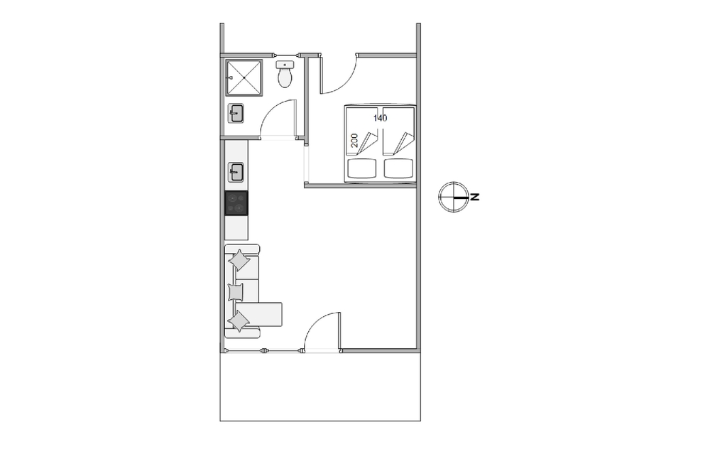 In die Wohnung gelangt ihr über die erste Terrasse und das Schlafzimmer, welches mit einem Doppelschrankbett ausgestattet ist.