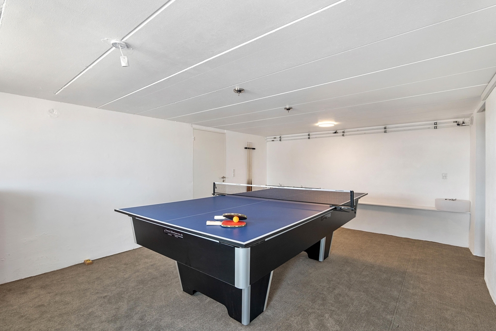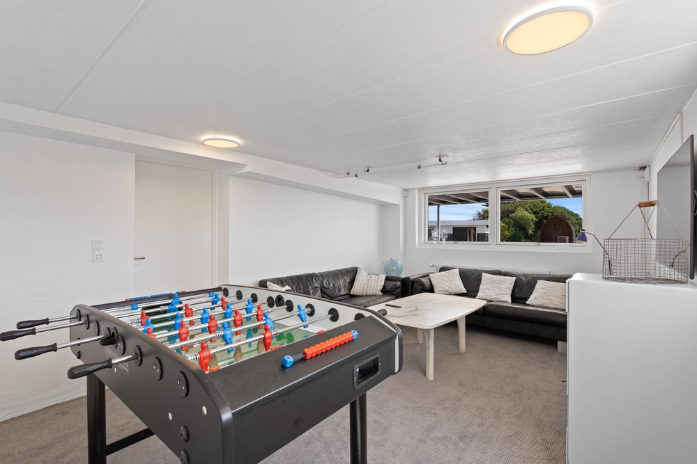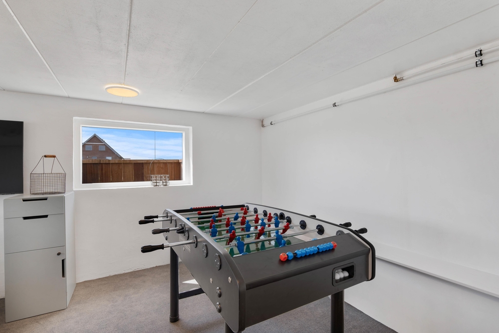 Ein weiteres Highlight dieses Ferienhauses ist der Aktivitätsraum, in dem ihr Tischfußball, Tischtennis und Billard spielen werdet, sodass ihr hier sicher viele, unterhaltsame Stunden miteinander verbringen könnt. Für ruhige, gemütliche Urlaubsmomente versammelt ihr euch im Wohnzimmer, wo ihr gemeinsam kochen, Spiele spielen und Filme ansehen könnt, während der Kamin im Hintergrund knistert und die gemütliche Urlaubsatmosphäre vervollständigt.