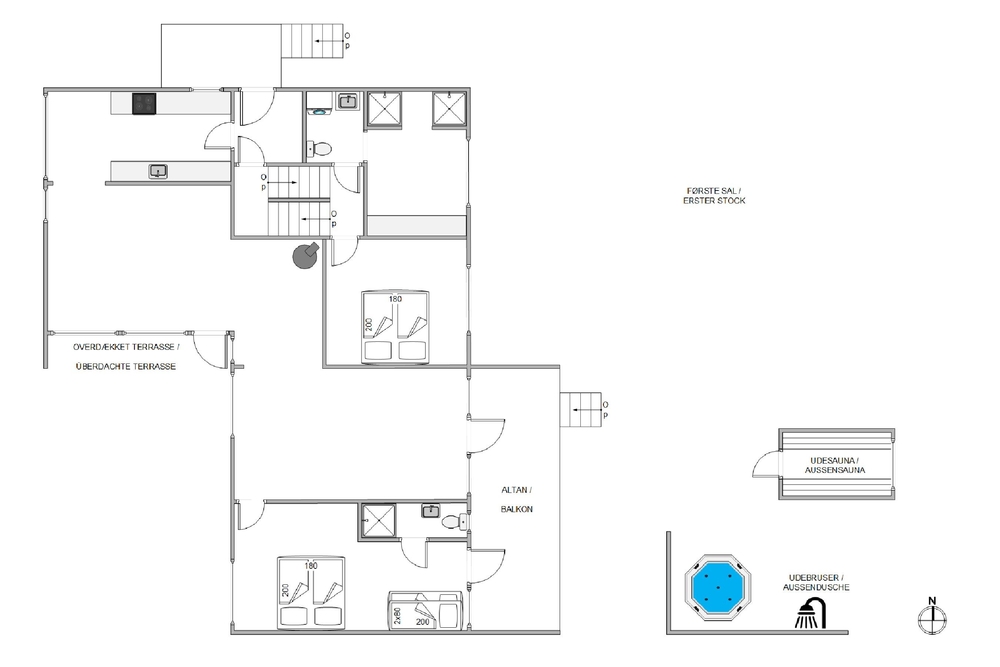 In dem 200 m2 großen Ferienhaus stehen euch 4 Schlafzimmer, ausgestattet mit insgesamt 3 Doppelbetten, 2 Einzelbetten und 1 Etagenbett, in denen ihr nach einem schönen Urlaubstag neue Kräfte sammeln könnt, zur Verfügung. Nach einer erholsamen Nachtruhe müsst ihr auch nicht Schlange stehen, denn im Ferienhaus gibt es 2 Badezimmer mit Fußbodenheizung und 1 Gästetoilette.