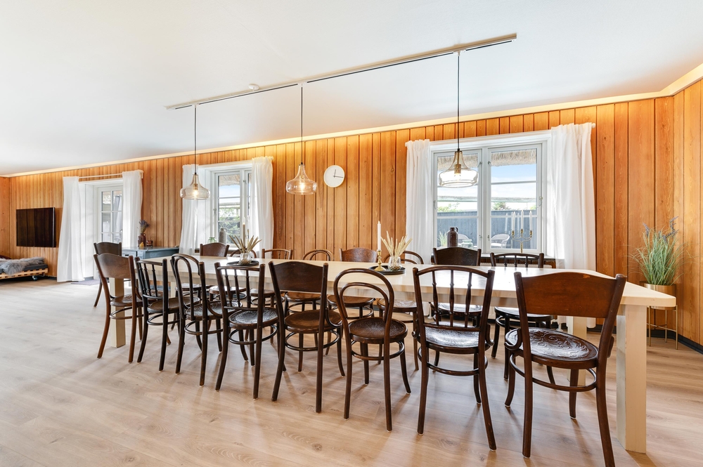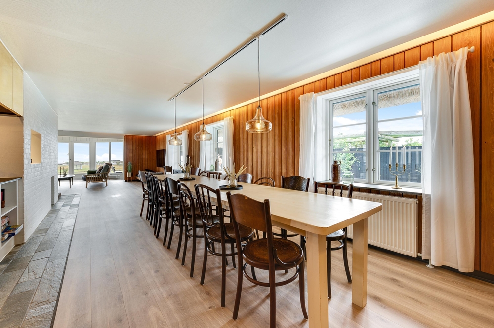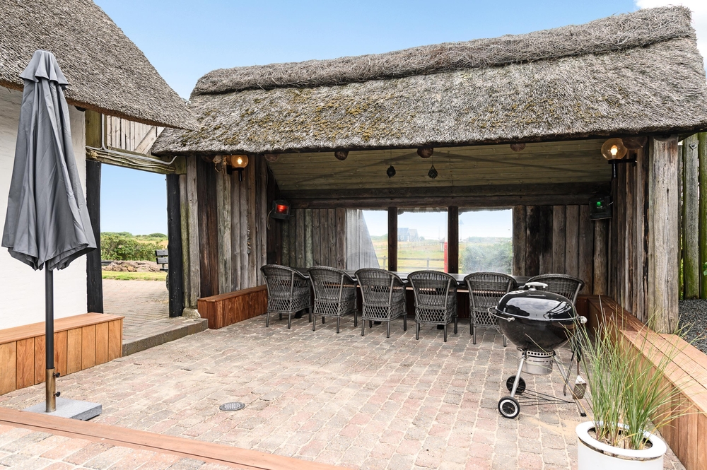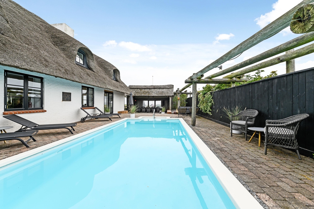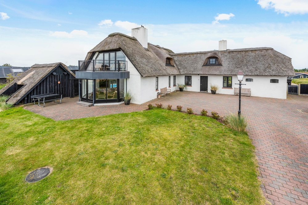 Nur ein Steinwurf vom naturschönen Lyngvig Hafen entfernt mit Aussicht zu Ringkøbing Fjord liegt dieses reetgedeckte 16-Personen-Ferienhaus mit Außenpool. Das Haus wurde 2019 durchgehend renoviert, und im neuen Interieur wird eine moderne Einrichtung mit einem klassischen Bauernstil kombiniert. Dies schafft eine sehr schöne Stimmung im Sommerhaus und macht den Urlaubsaufenthalt ganz besonders.
