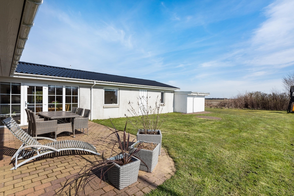 Das Haus liegt nicht nur auf einem offenem und sonnigem Grundstück, sondern wird auch durch eine große und teilweise sogar überdachte und damit gut wind- und wettergeschützte Terrasse ergänzt. Es wird euch also leicht fallen, ein sonniges und geschütztes Plätzchen an der Sonne finden, wo ihr frische Luft schnappen und dem Gezwitscher der Vögel lauschen könnt.