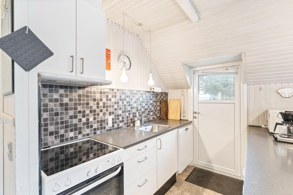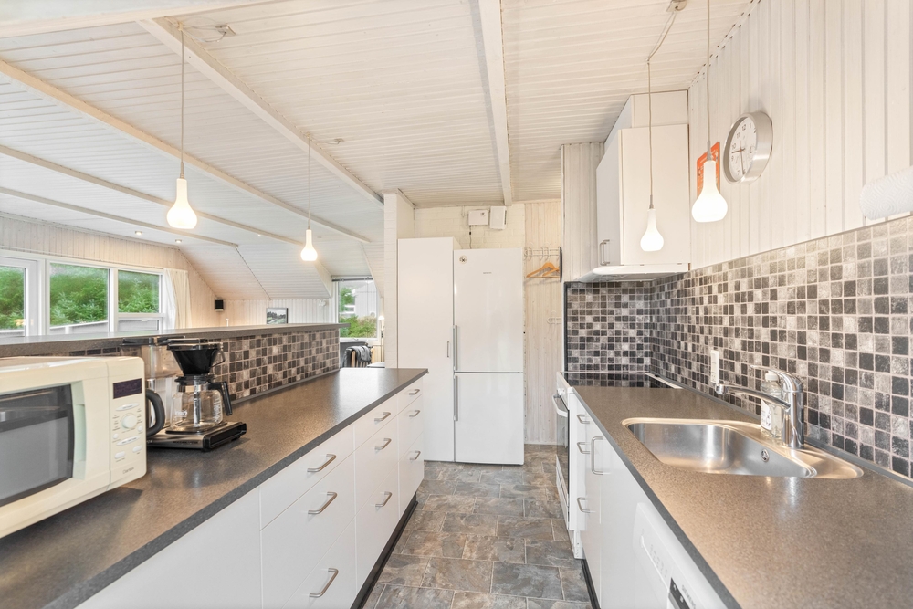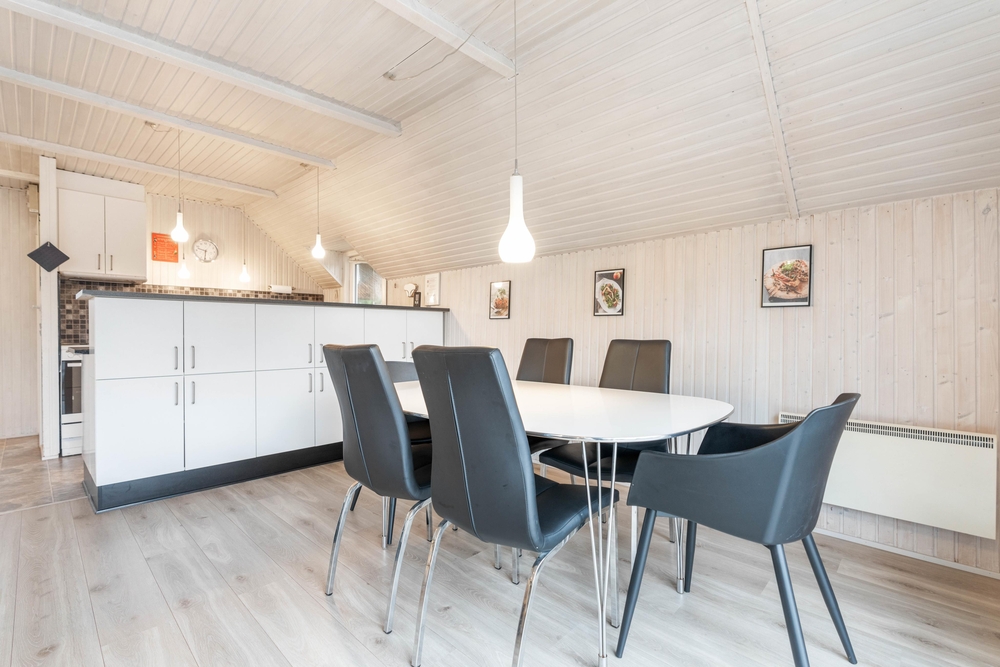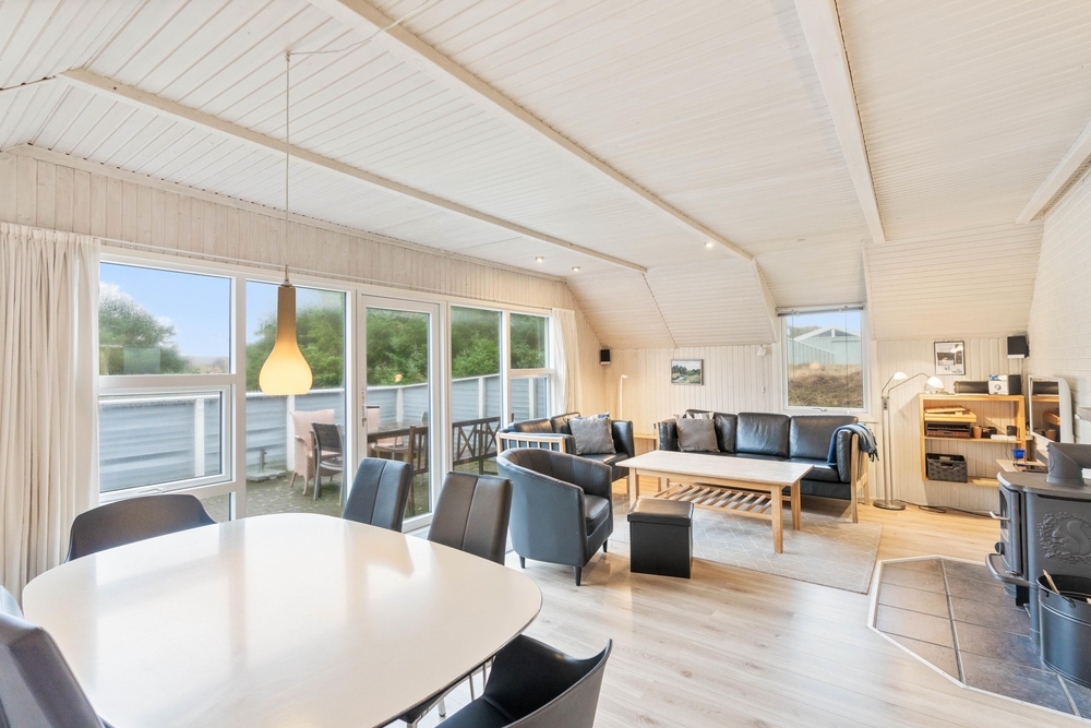 Sobald ihr das Ferienhaus in Houvig betretet, werdet ihr spüren, wie ihr euch anfangt zu entspannen. Hier herrscht eine herrliche Ruhe, die auf die Besucher völlig ansteckend wirkt. Das Herzstück des Hauses ist das schöne Wohnzimmer, in dem Wohnbereich, Essbereich und Küche ineinander übergehen. Ihr seid also nie weit voneinander entfernt, wenn ihr in diesem Ferienhaus wohnt.