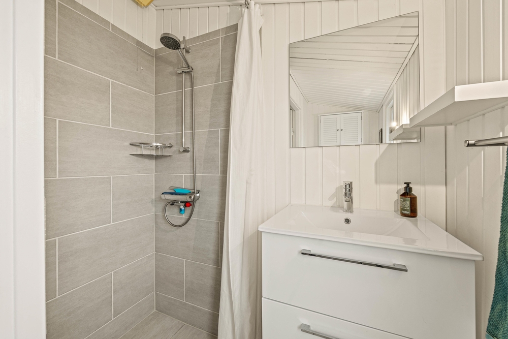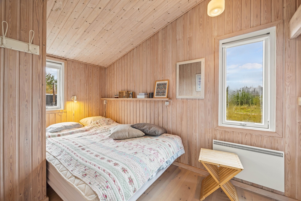 Das Ferienhaus hat ein schönes Badezimmer mit Fußbodenheizung. Es gibt 2 helle Schlafzimmer, die beide mit Doppelbetten ausgestattet sind.