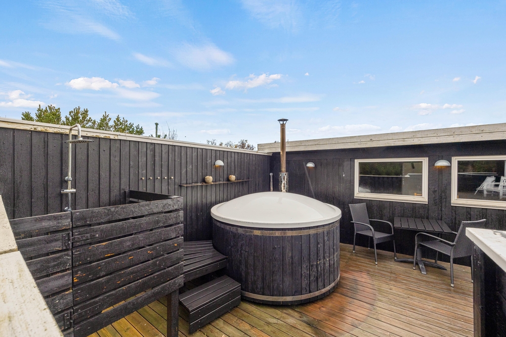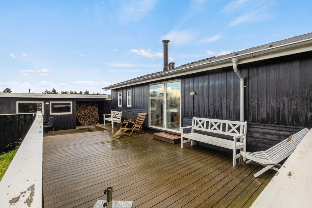 Auf der schönen Terrasse direkt vor dem Familienzimmer des Sommerhauses gibt es viele schöne Ecken, wo Ihr euch entspannt in Liegestühlen und Gartenmöbeln zurücklehnen könnt ? um die frische Luft der Nordsee genießen zu können. Abends könnt Ihr den Grill benutzen, um euer Abendessen zuzubereiten.