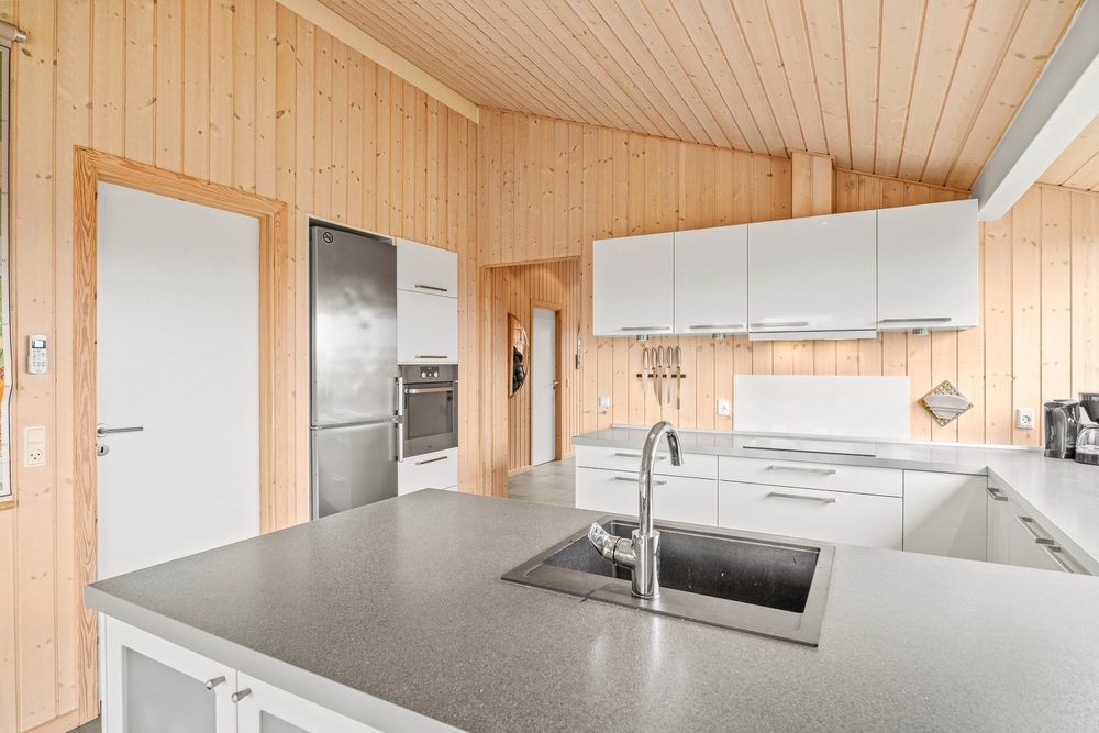 Schon im Flur werdet ihr von der Urlaubsatmosphäre begrüßt. Der Wohn- und Essbereich lädt zur Gemütlichkeit und Zweisamkeit ein ? hier gibt es Platz für alle. Die energiesparende Wärmepumpe sorgt dafür, dass das Ferienhaus jederzeit eine angenehme Raumtemperatur hat. Auch könnt Ihr den zentral gelegenen Holzofen anzünden und dessen Wärme genießen, während Ihr euch mit hochgelegten Beinen auf dem kuschligen Sofa zurücklehnt.