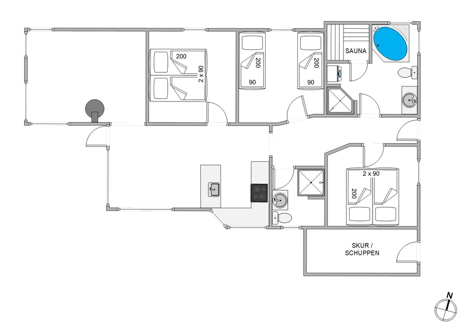 In der Nähe von Stadt und Strand befindet sich am Mågevej 6 in Henne Strand dieses fantastische Ferienhaus, wo bis zu 6 Personen einen wunderschönen und entspannten Urlaub verbringen können. Nicht nur die Ausstattung ? mit Whirlpool und Sauna ? sondern auch die Umgebung dieses Ferienhauses laden zu echtem Wohlbefinden ein: die schöne Lage bietet Sommer wie Winter viele Möglichkeiten für Gemütlichkeit und Entspannung für die ganze Familie.