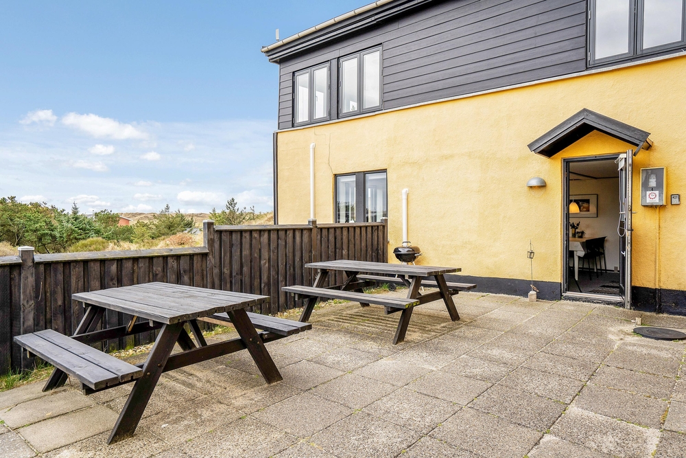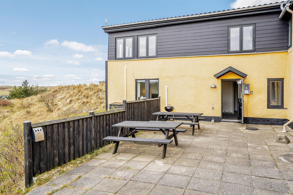 Auf der geschützten Terrasse, umgeben vom Duft des Strandhafers, könnt ihr euren Morgen Kaffee genießen, oder an einem lauen Sommerabend den Grill anmachen. Auch wenn die größte Sandkiste, nämlich der Strand von Vejers, nur 300 Meter vom Haus entfernt liegt, gibt es hier eine kleine Sandkiste und eine Schaukel zum Spielen.