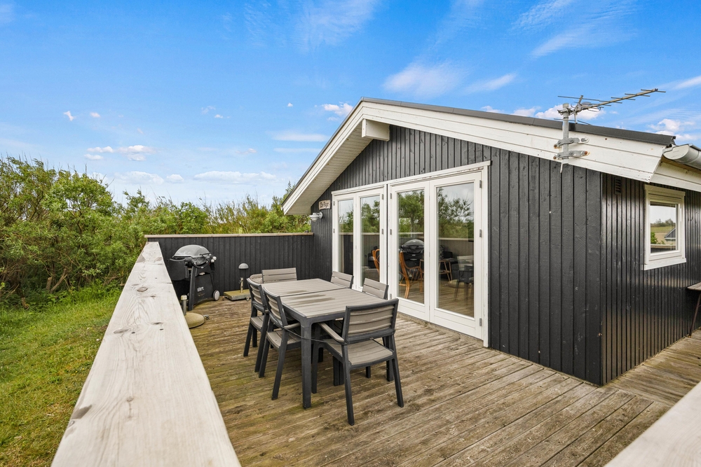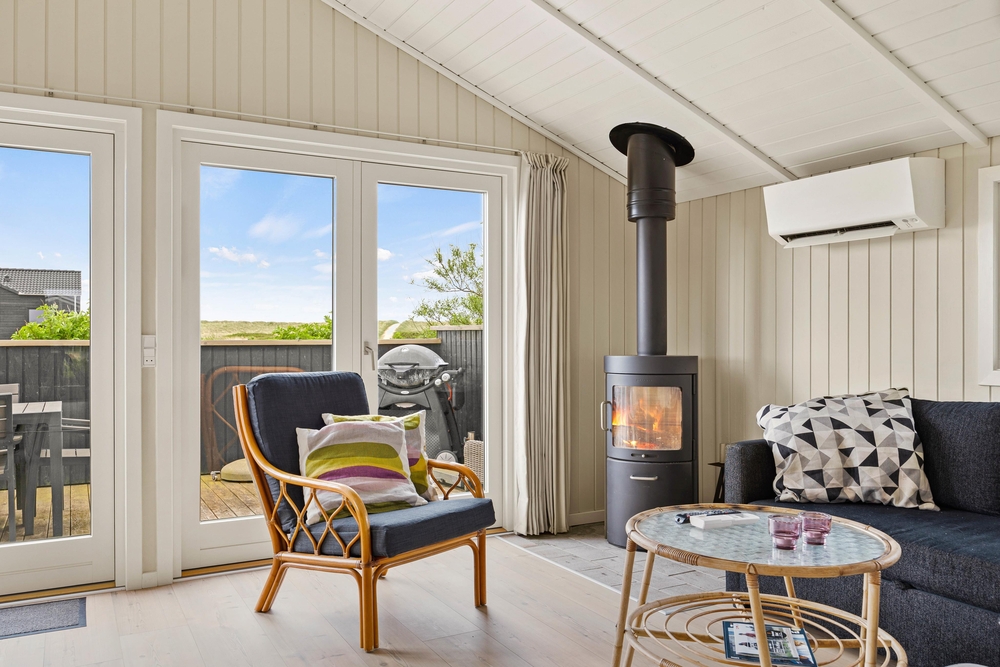 Im Mærsk Vase 7 in Blåvand trifft dänische Sommerhaus Nostalgie auf Natur pur. Der Weitblick über die Marsch Landschaft und die Dünen, und die 100 Meter zum Strand, sind ein echtes Highlight. Dazu noch die typisch, dänische Hygge Atmosphäre mit einem Feuer im Kaminofen und die Erholung ist garantiert.