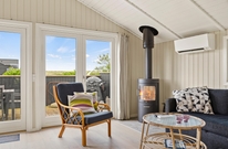 Auf den 73 m² eures Ferienhauses kommt ihr schnell in die richtige Ferienstimmung. Die meisten Stunden werdet ihr im Herzen des Hauses, dem offenen Wohn-Essbereich verbringen. Hier ist es nicht nur sehr gemütlich, besonders wenn ein Feuer im Kaminofen knistert, von hier aus könnt ihr auch den traumhaften Weitblick über die Landschaft der dänischen Westküste genießen. Hier kann man die Zeit schon mal bei einem Spiele- oder Filmeabend vergessen. Der TV hat übrigens einen Chromecast Stick, über den ihr eure Lieblingsfilme- und Serien einfach streamen könnt.