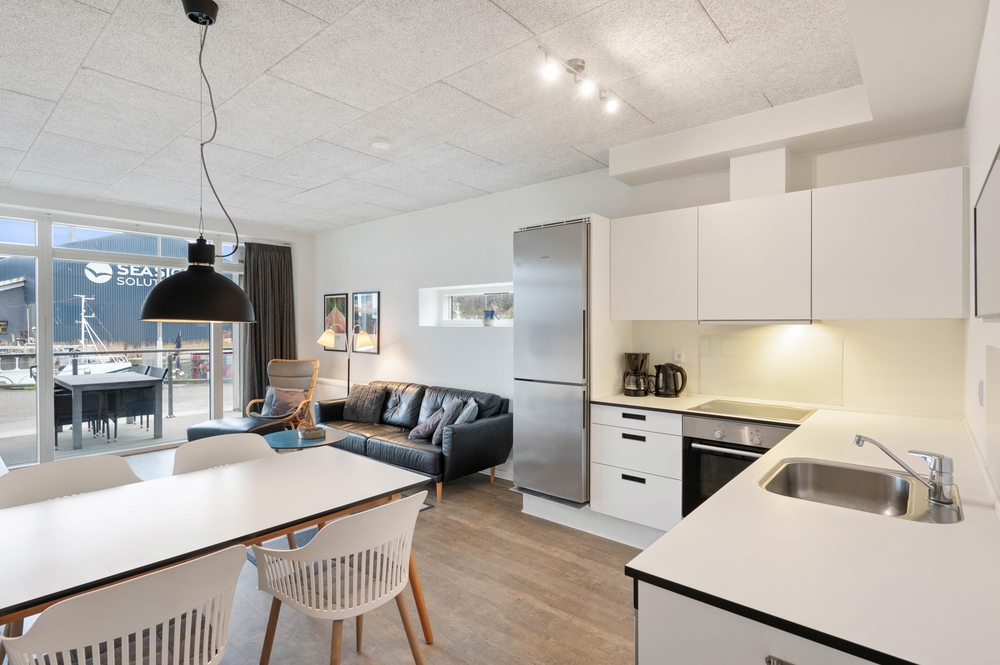 Im Herzen des gemütlichen Ferienortes Hvide Sande liegt diese moderne und hell eingerichtete Ferienwohnung auf Mamrelund 6 Eg. G. Die Lage ist eine der besten mit einem fantastischen Ausblick auf den kleinen Fjordhafen im Mamrelund. Gleich um die Ecke gibt es schöne Restaurants, spannende Geschäfte und dem schönen Sandstrand. Als kleines Bonus ist der Stromverbrauch inklusive.