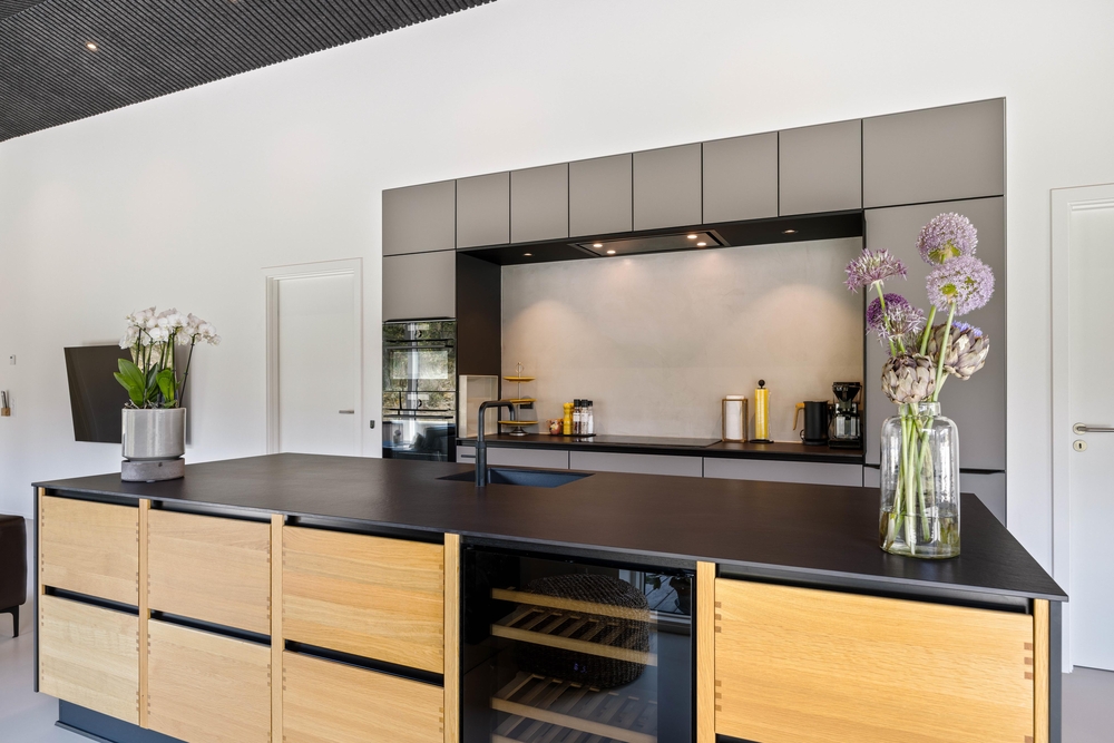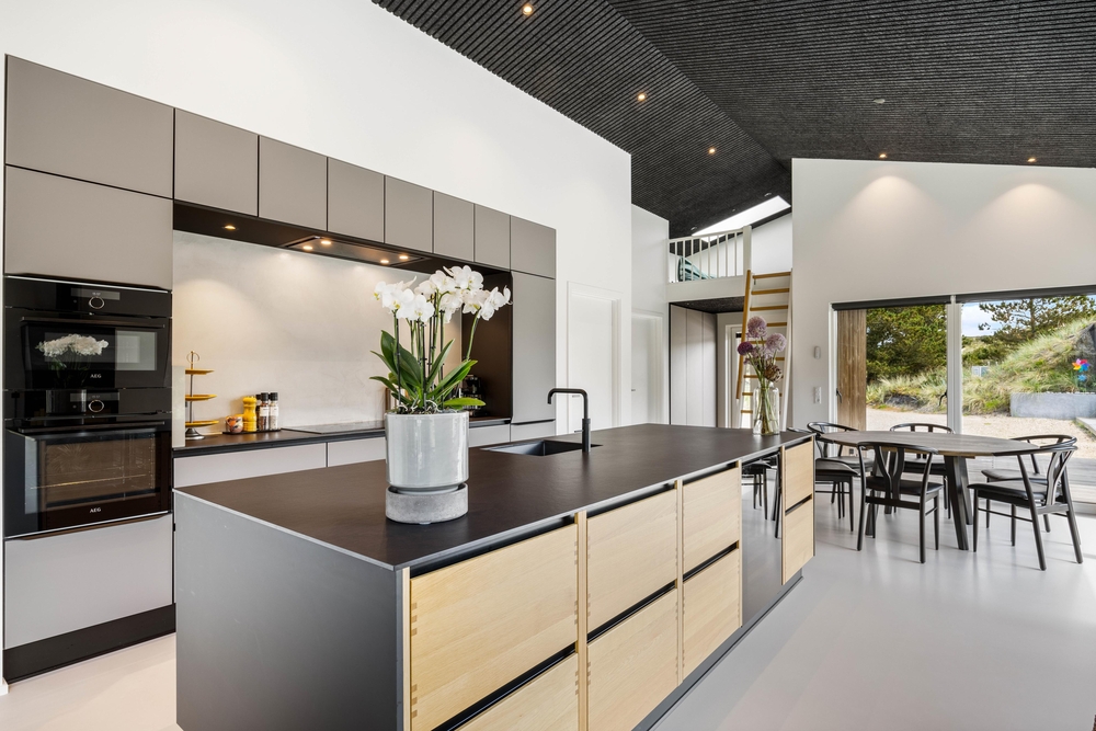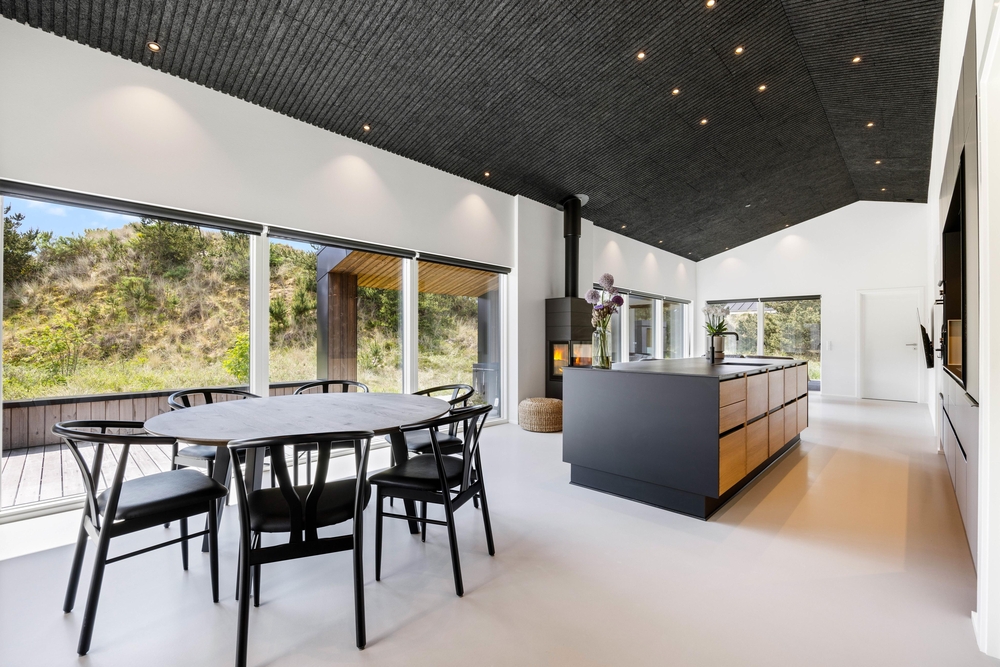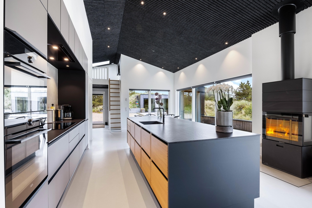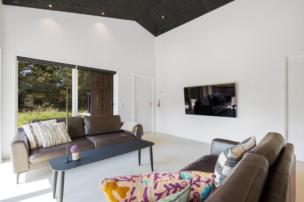 Der Wohnbereich ist offen zur gut ausgestatteten Küche gestaltet, die das Herzstück eurer kulinarischen Erlebnisse sein wird. Eine Spülmaschine erleichtert den Abwasch nach gemeinsamen Mahlzeiten. Damit der Wein die richtige Temperatur hat, wurde im Ferienhaus ein Weinkühlschrank installiert.Das Wohnzimmer bietet einen 65 Zoll Fernseher und wird für gemütliche Fernsehabende sorgen.