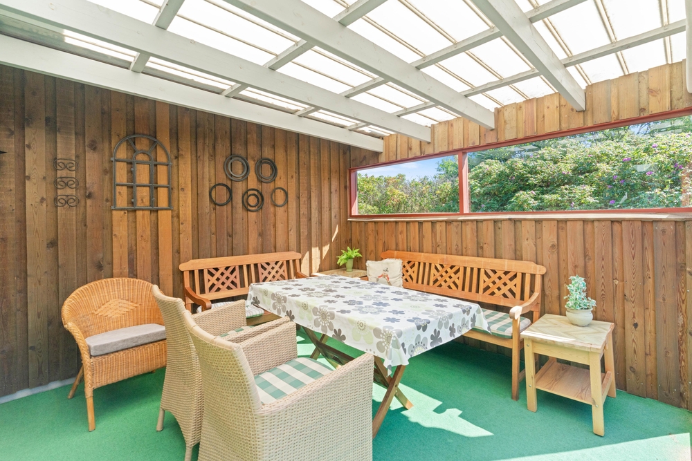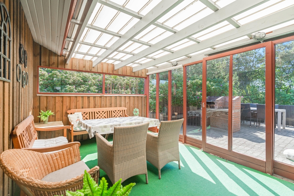 Sollte es regnen, macht das nichts, denn das Ferienhaus verfügt über eine große überdachte Terrasse, auf der ihr im Schutz von Wind und Wetter grillen könnt. Diese ?wintergartenähnliche? Terrasse sorgt dafür, dass ihr immer einen Unterschlupf finden könnt. Dieses Ferienhaus ist also ideal, wenn ihr euch einen Urlaub wünscht, in dem ihr euch ungestört entspannen könnt.
