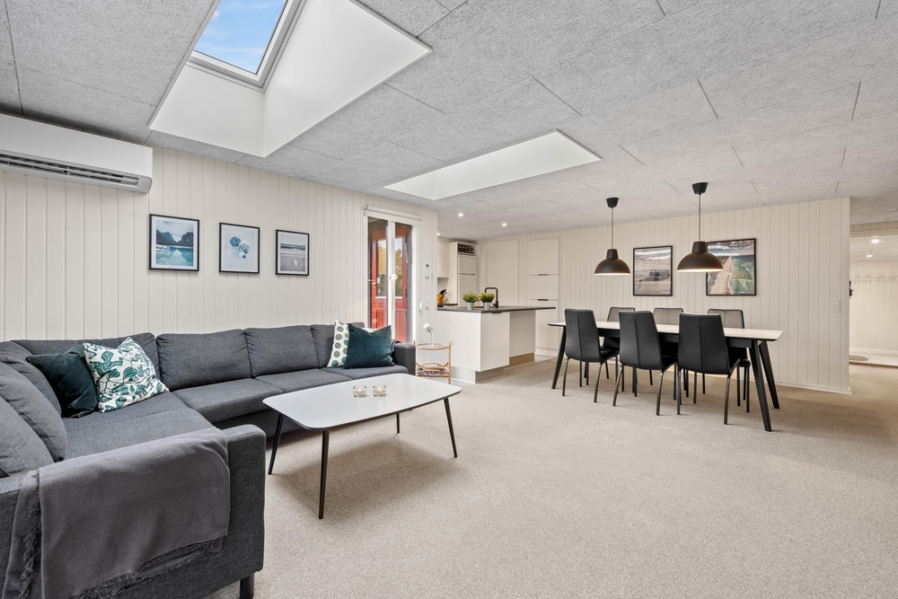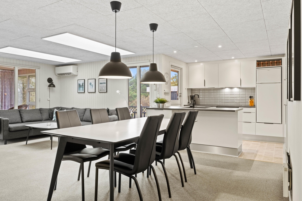 Das Ferienhaus befindet sich an der Ferienadresse Marehalmen 2 und lädt euch zu einem tollen Urlaub ein. Das Herzstück des Ferienhauses ist das große Wohnzimmer, das zum Essbereich und zur Küche hin offen ist. Hier kann die ganze Familie zusammenkommen und stundenlang Spaß haben, kochen, spielen oder sich einfach in ein gutes Buch vertiefen, während im Hintergrund das Knistern des Holzofens zu hören ist.