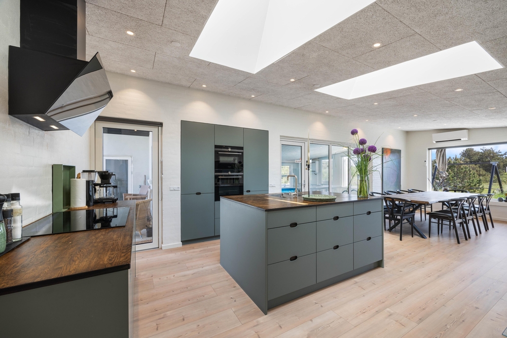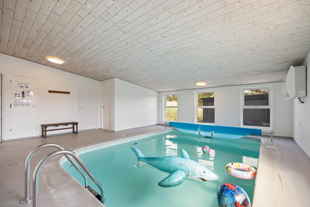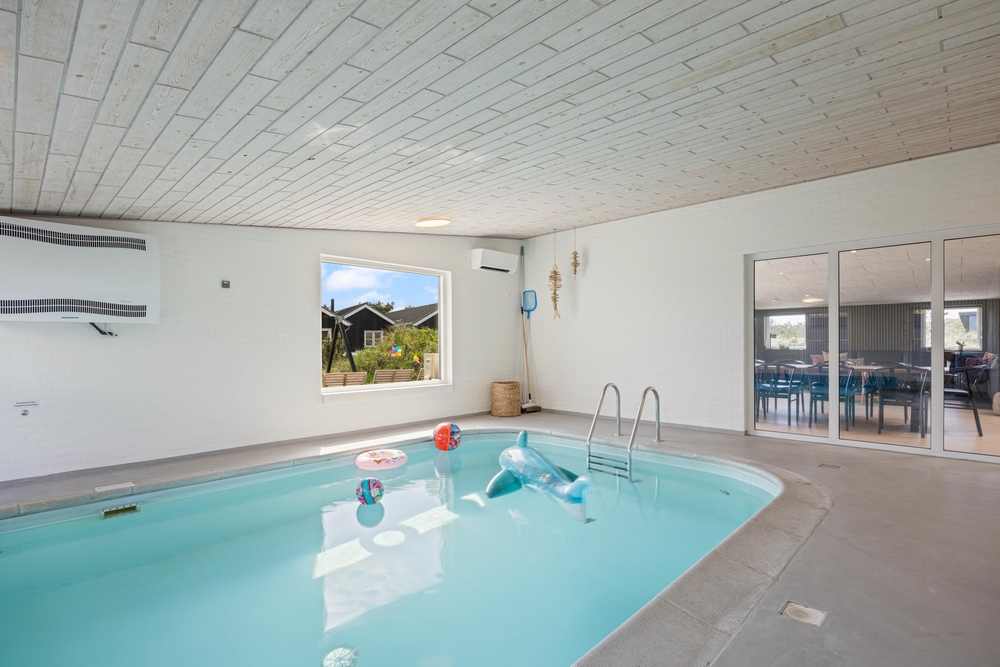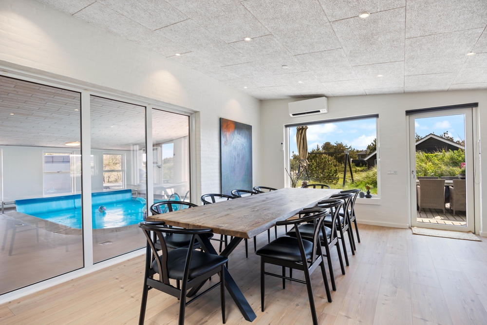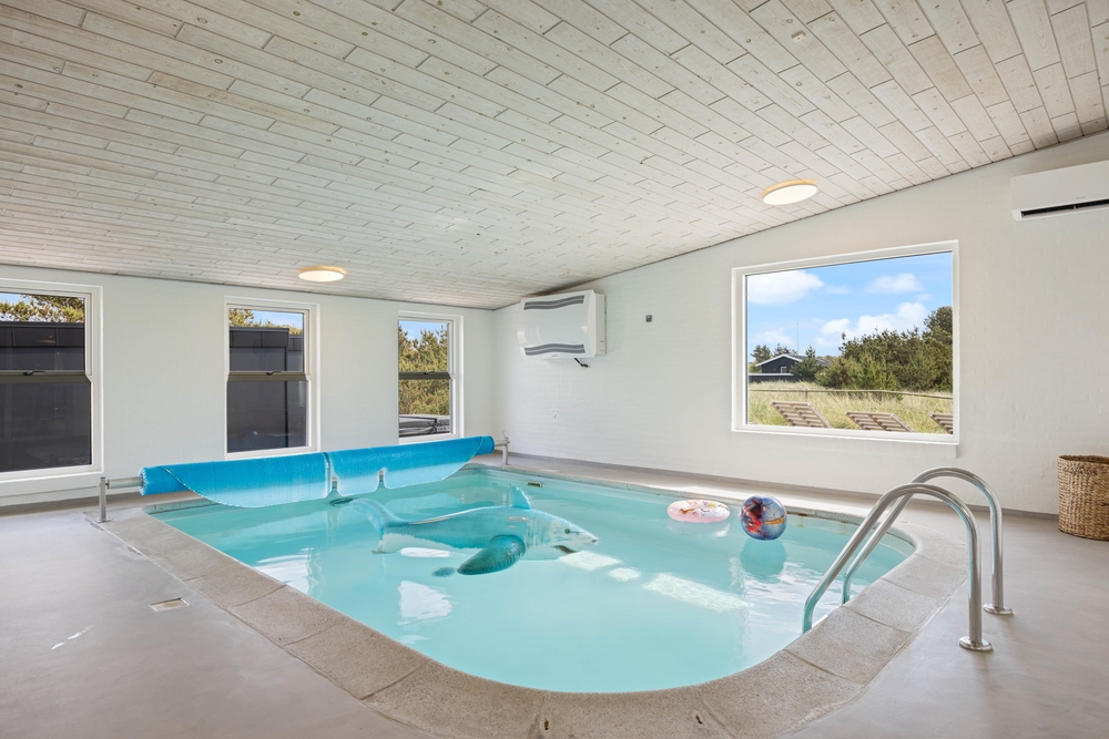 Ihr braucht eine erholsame Auszeit vom Alltag, wo Komfort, Gemütlichkeit und Wellness die Schlagworte für euren Urlaub sein könnten. Dann seid ihr hier richtig. Denn im Poolhaus im Marehalmen 27 in Søndervig bekommt ihr einen Salzwasserpool, einen Salzwasser außen Whirlpool, ein Naturgrundstück und eine gemütliche Umgebung. Das Ferienhaus wurde in 2022 umfassend renoviert und bietet Platz für 10 Übernachtungsgäste sowie 2 Hunde, was das Ferienhaus zum optimalen Rahmen für die Urlaubspläne der Großfamilie macht. Wenn ihr mit dem E-Auto anreist, ist eine Lademöglichkeit am Ferienhaus vorhanden.Die passenden Ladekabel bitte selbst mitbringen.