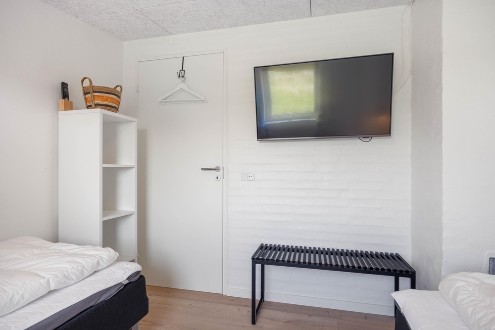 Es gibt 5 Schlafzimmer und in jedem Schlafzimmer wurde ein Fernseher installiert. So kann jeder sich auch mal zurückziehen, wenn es nötig ist. Das Ferienhaus verfügt über eine Wärmepumpe, sodass ihr es an kalten Tagen garantiert warm haben werdet. Um für noch mehr Ferienhausatmosphäre zu sorgen, macht den Holzofen an und lauscht dem entspannten Prasseln des Feuers.