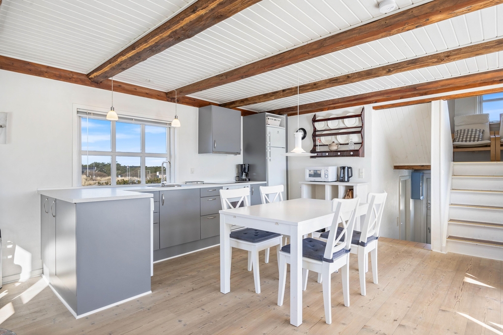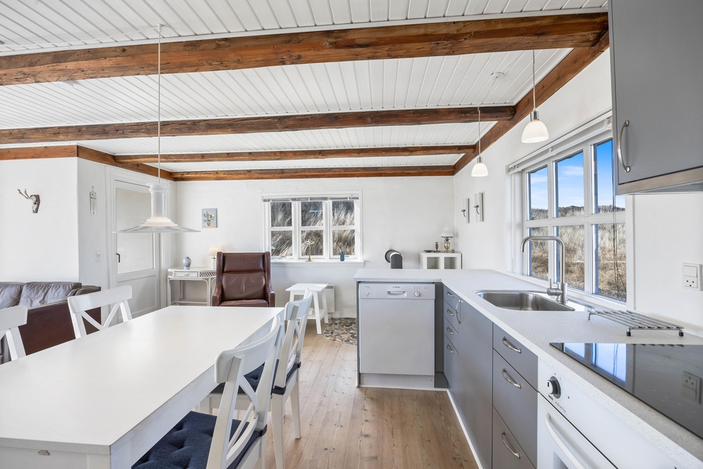 Ein hervorragendes und sehr gepflegtes Ferienhaus nah an der Nordsee; es ist liebevoll in hellem und gemütlichem Stil eingerichtet. Das Haus wurde auf versetzten Ebenen gebaut, die zur gemütlichen Atmosphäre beitragen. Vom Wohnzimmer und der Küche hat man eine sehr schöne Aussicht.