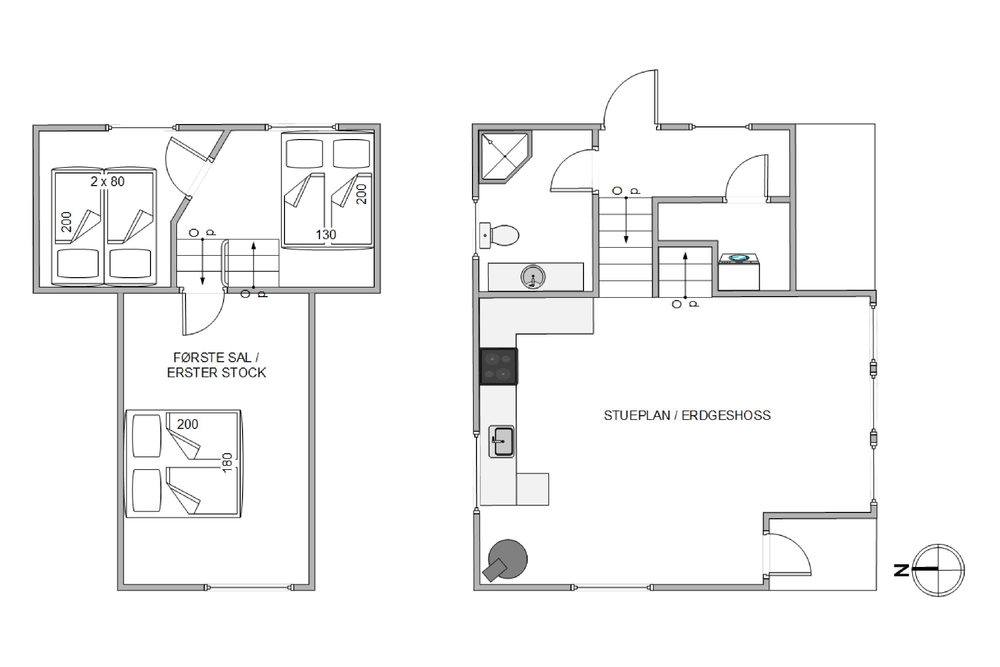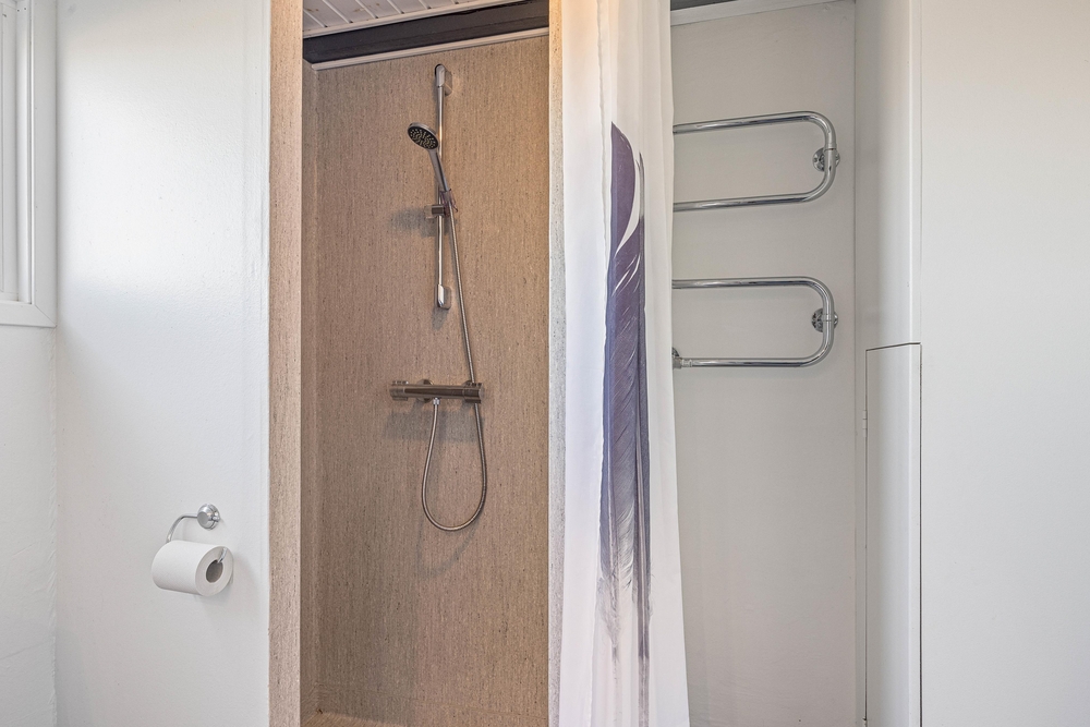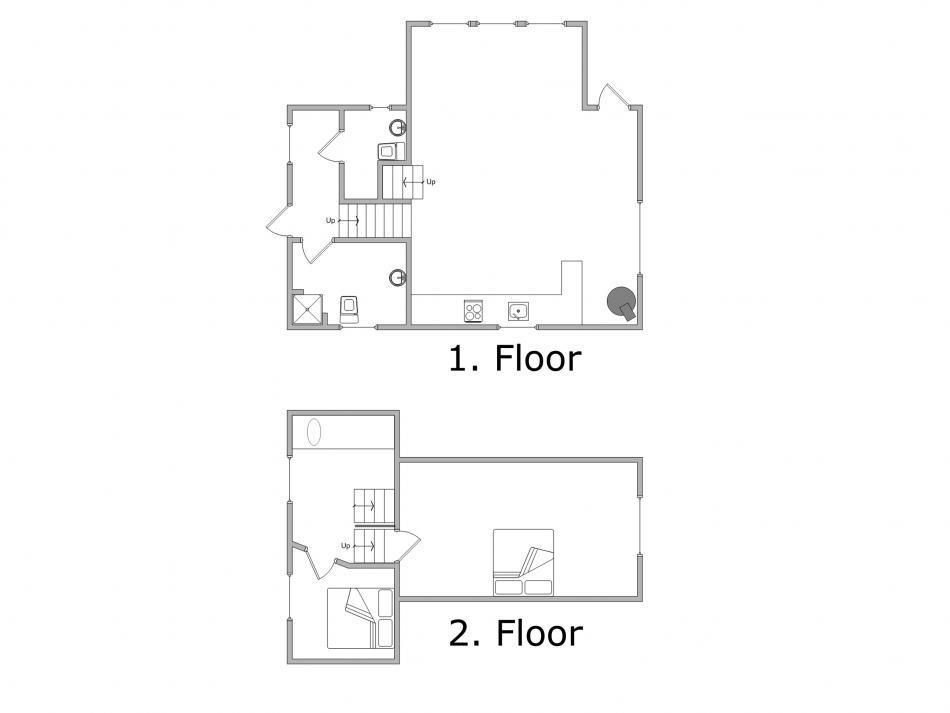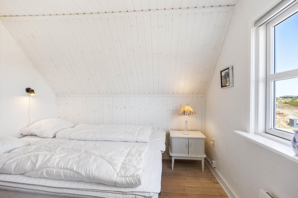 Dieses charmante Ferienhaus mit Platz für bis zu 4 Personen hat in der unteren Etage einen schönen Flur und ein Badezimmer. In der Mitte des Hauses befinden sich eine herrliche Wohnküche und ein geschmackvoll eingerichtetes Wohnzimmer mit vielen hübschen Details. Eine Treppe höher gibt es einen Alkoven, in dem man sich beim Fernsehen entspannen kann. Auf der selben Ebene befindet sich ein kleines Schlafzimmer mit einem Doppelbett. Die oberste Treppe führt zu einem größeren Schlafzimmer, ebenfalls mit einem Doppelbett.