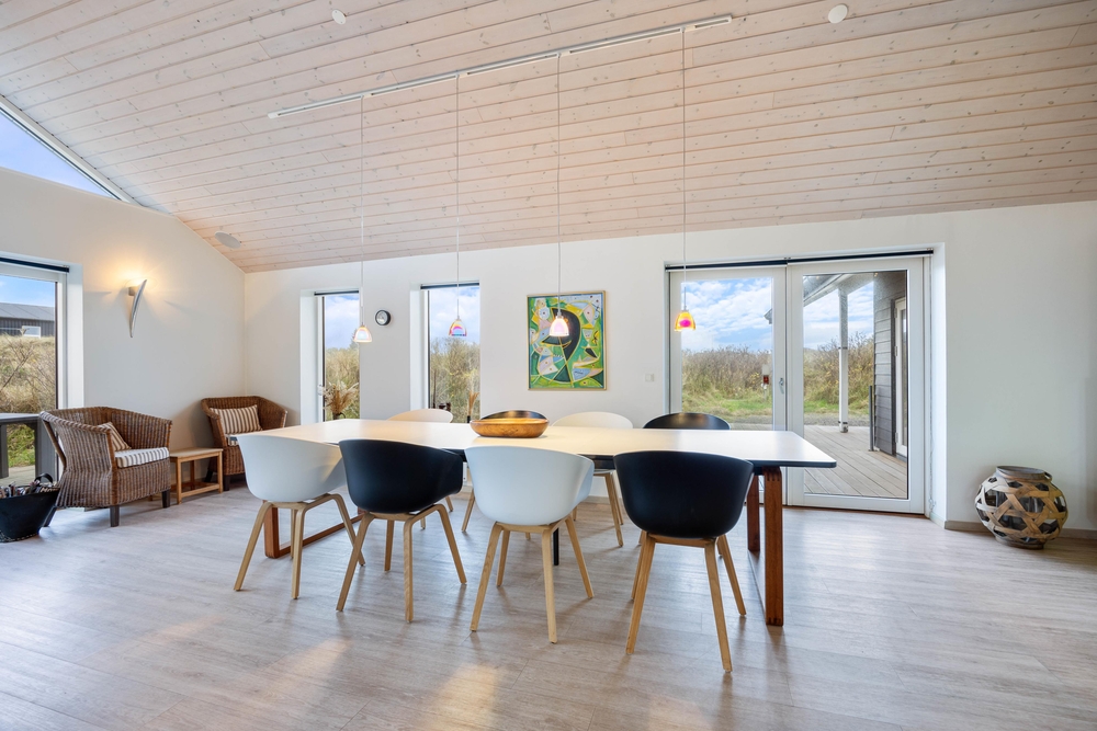 In diesem schönen Ferienhaus wird es euch an nichts fehlen. Ihr werdet ganz bestimmt viele schöne Abende zusammen in dem großen Wohn- und Essbereich verbringen ? nicht nur wenn es darum geht das Abendessen zusammen in der offenen und gut ausgestatteten Küche zu zubereiten, sondern auch, wenn ihr euch abens um den Esstisch oder auf dem Sofa sammelt, um einen schönen Ferientag mit einem Kartenspiel ausklingen zu lassen.