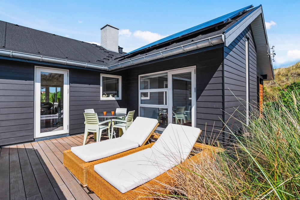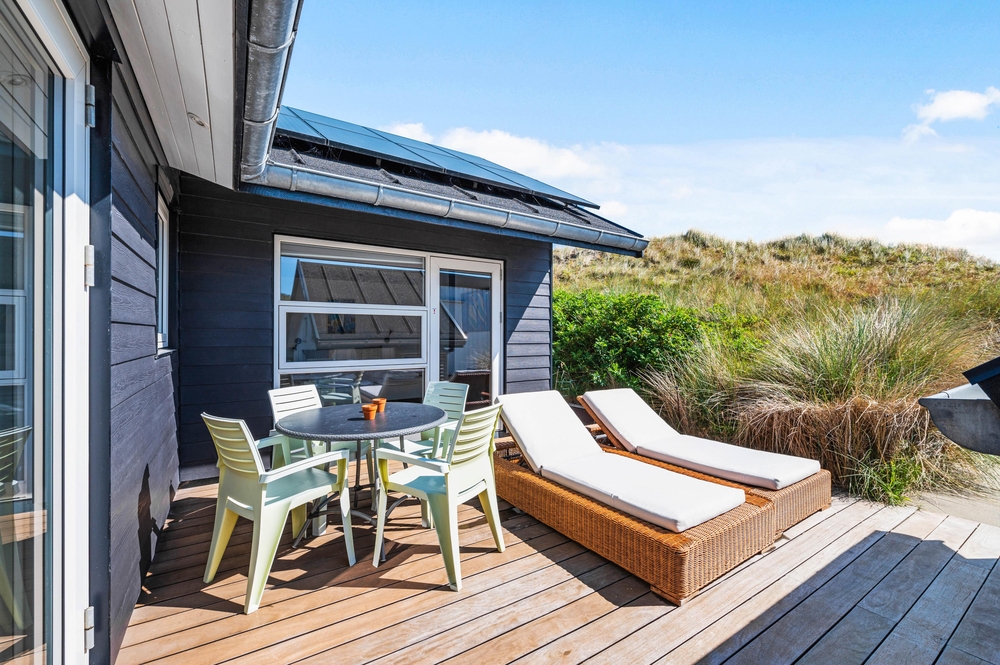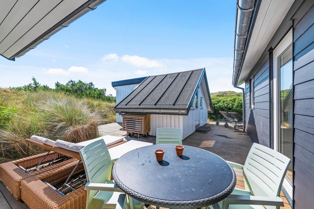 Von dem Wohnraum und den Schlafräumen aus, habt ihr den direkten Zugang zur schönen Terrasse, die mehrere schöne und geschützte Plätzchen hat, und ihr somit die Sonnenstrahlen rund um die Uhr genießen könnt. Nicht nur, dass das Haus ein tolle und ruhige Lage in einer wunderbaren Umgebung hat, es liegt gleichzeitig nur ca. 500 m vom langen Sandstrand entfernt. Durch die kleinen Naturpfade durch die Dünen, gelangt ihr schnell ans Meer ? ein Ort der zu jeder Jahreszeit ein Besuch wert ist!