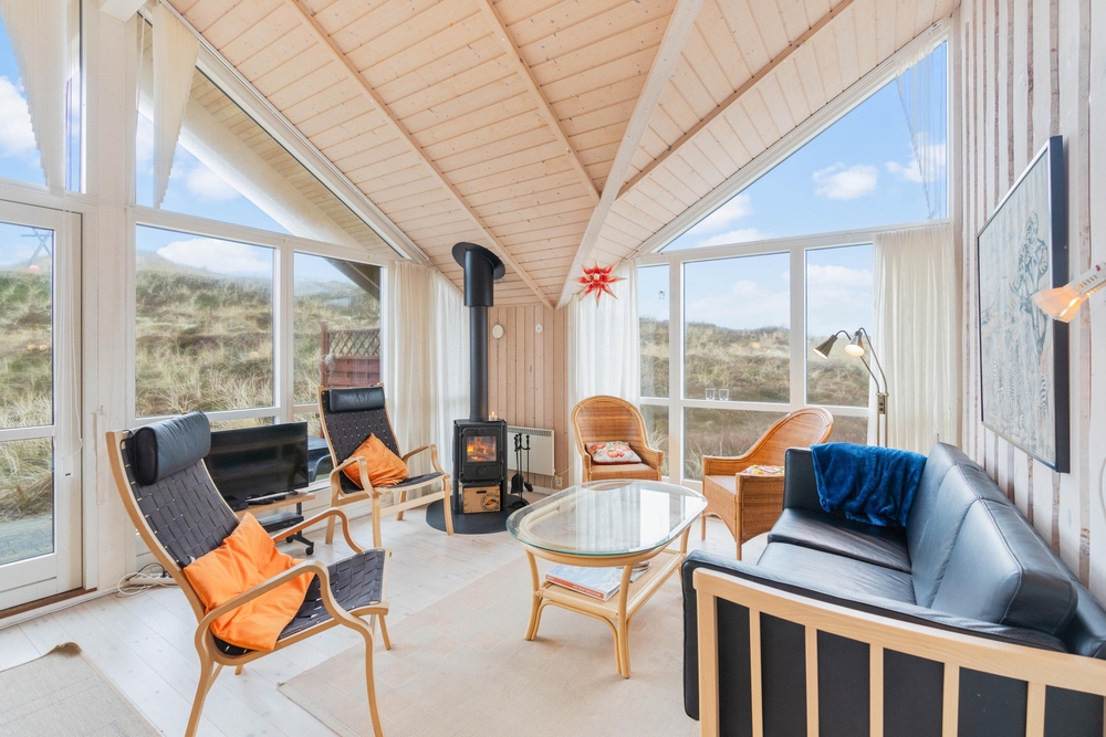 Das Ferienhaus verfügt über eine voll ausgestattete Küche, die es euch ermöglicht, kulinarische Köstlichkeiten zuzubereiten. Der großzügige Wohnbereich lädt zum Entspannen ein, während der Holzofen an kühleren Tagen für wohlige Wärme sorgt. Durch die vielen Fenster und die helle Täfelung ist euer Ferienhaus lichtdurchflutet. Praktische Annehmlichkeiten wie eine Waschmaschine erleichtern euren Aufenthalt. Das Badezimmer mit Fußbodenheizung sorgt dafür, das ihr mit warmen Füßen in den Tag startet.
