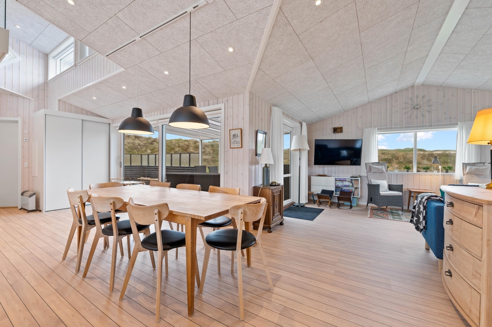 Das neu gebaute (2022) Ferienhaus im Marehalmen 71 empfängt euch mit seiner hellen Einrichtung, in der ihr euch zweifellos schnell wohlfühlen werdet. Die vielen Fenster im Wohnbereich lassen reichlich Licht ins Ferienhaus und geben einen traumhaften Blick auf die wunderschöne Dünenlandschaft frei. Das Wohnzimmer steht in offener Verbindung mit dem Essbereich und der Küche und bildet das Herzstück des Ferienhauses.