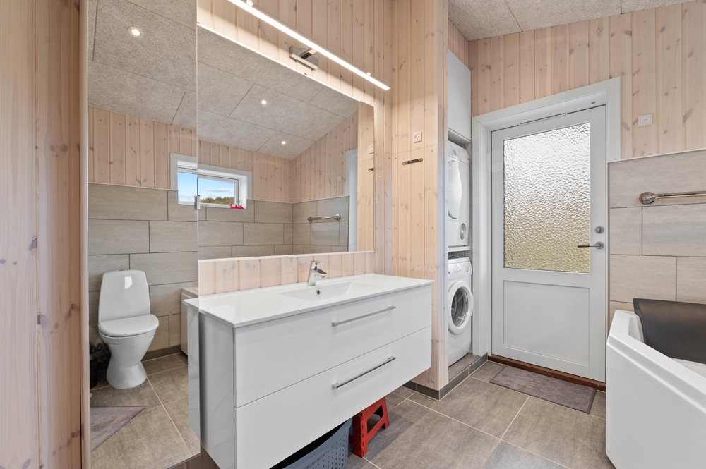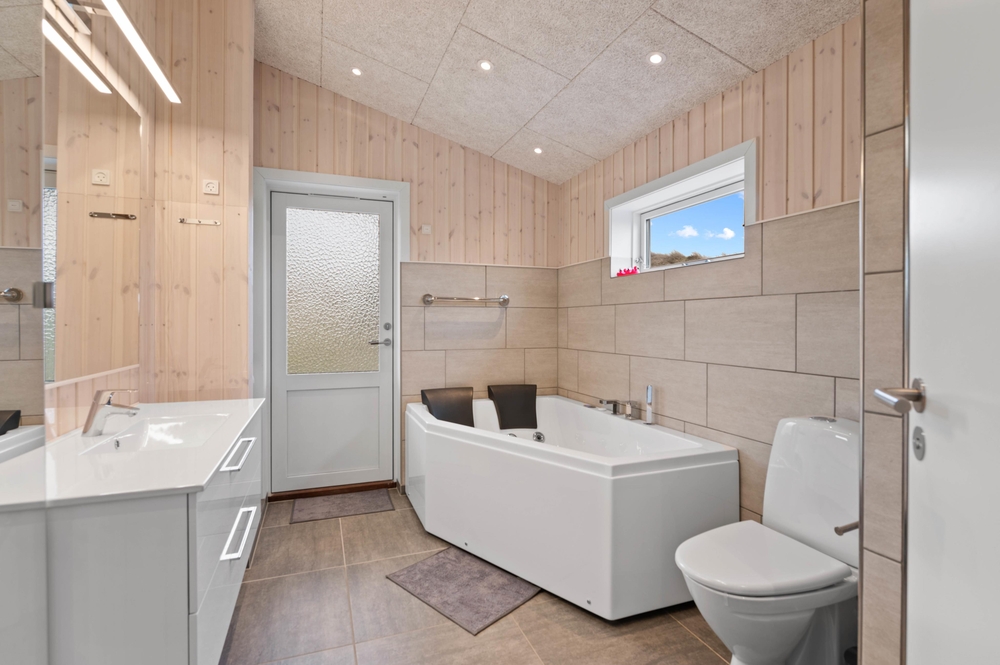 Das Ferienhaus ist mit 2 Badezimmern ausgestattet, die beide über eine Fußbodenheizung verfügen. In einem der Badezimmer wurde sogar an einen Whirlpool gedacht und einem warmen und sprudelndem Bad steht nichts im Wege.