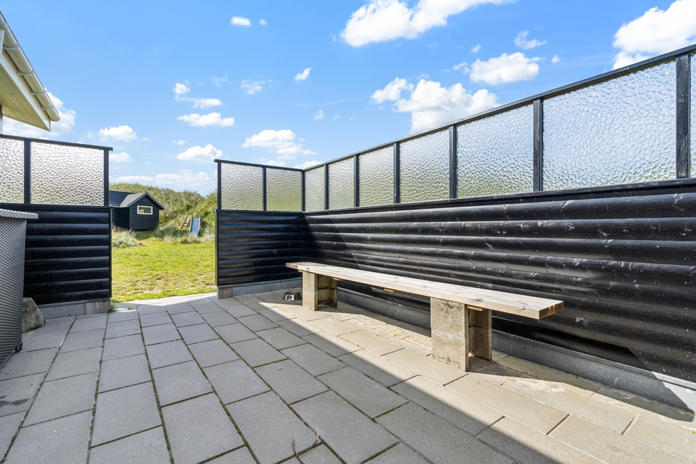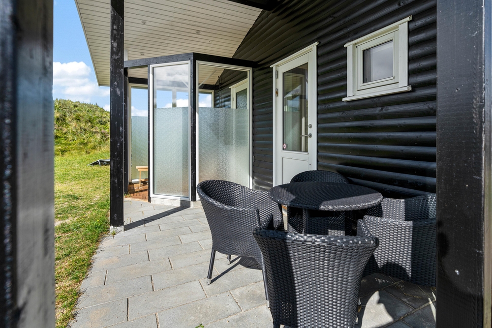 Der Außenbereich bietet euch mehrere schöne Terrassen, auf denen ihr es euch an sonnigen und warmen Urlaubstagen auf den Gartenmöbeln und Liegestühlen bequem machen könnt. Mit dem Rauschen der tobenden Nordsee im Hintergrund könnt ihr hier Entspannung und Ruhe finden.