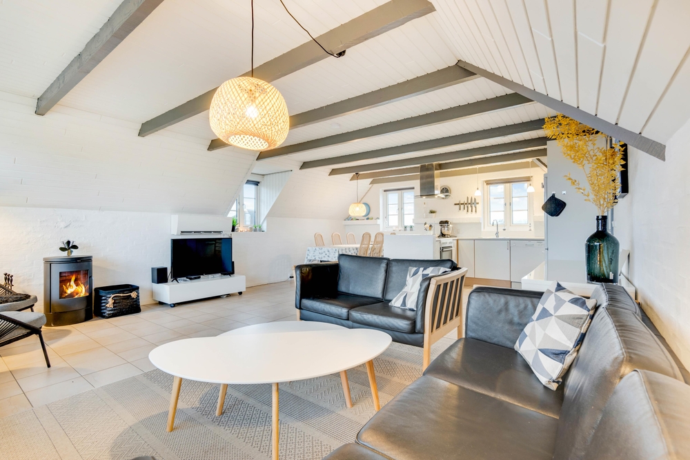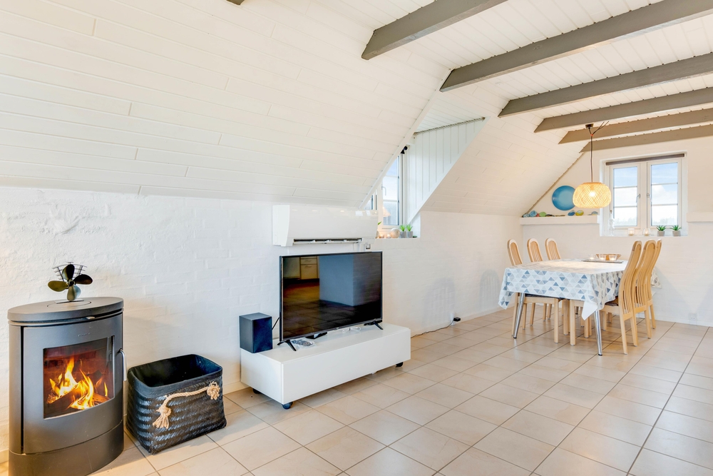 Das Ferienhaus ist nicht nur schön eingerichtet, sondern auch gut ausgestattet. Verbringt am Abend eure gemeinsame Zeit vor dem knisternden und wärmenden Kamin oder veranstaltet einen Filmabend oder Serienmarathon. Der vorhandene Chromecast ermöglicht es euch, zu streamen, was euch gefällt. Das Internet könnt ihr kostenfrei nutzen. Über den Satelliten werden deutsche Fernsehprogramme empfangen. Vom Wohnzimmer aus habt ihr Zugang zur Terrasse und durch die große Fensterfront habt ihr eine schöne Aussicht auf die Dünen.