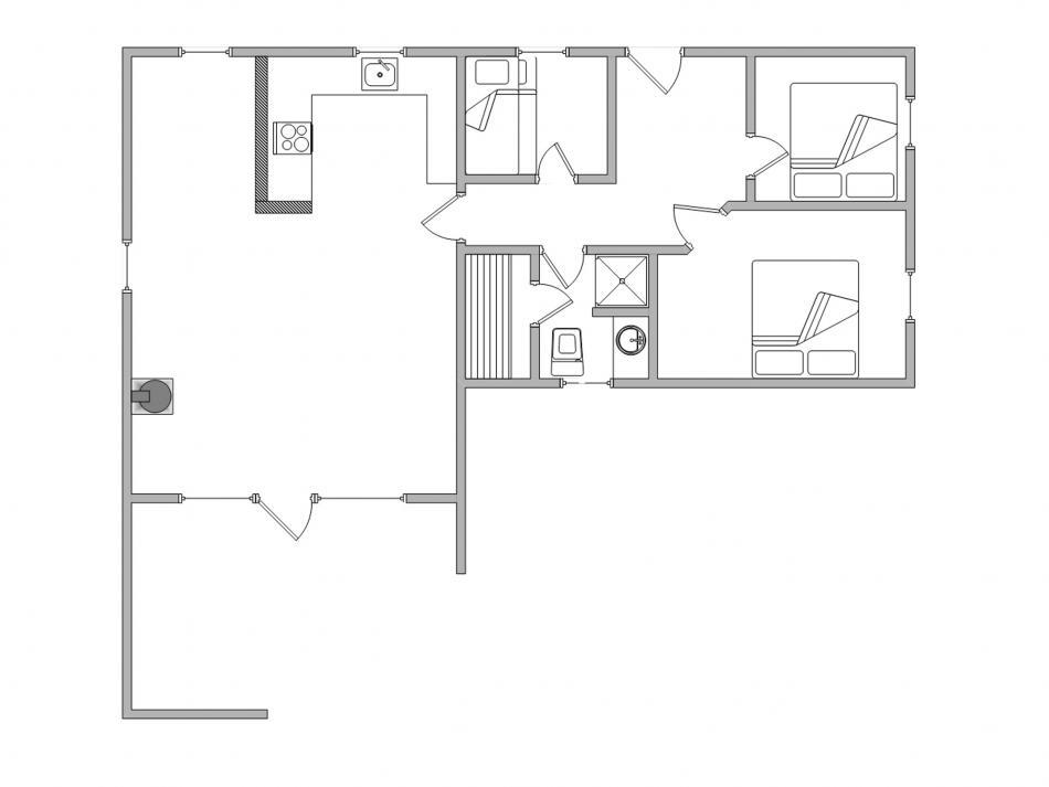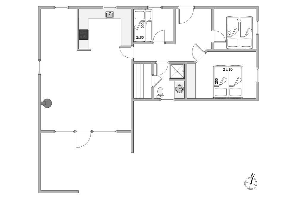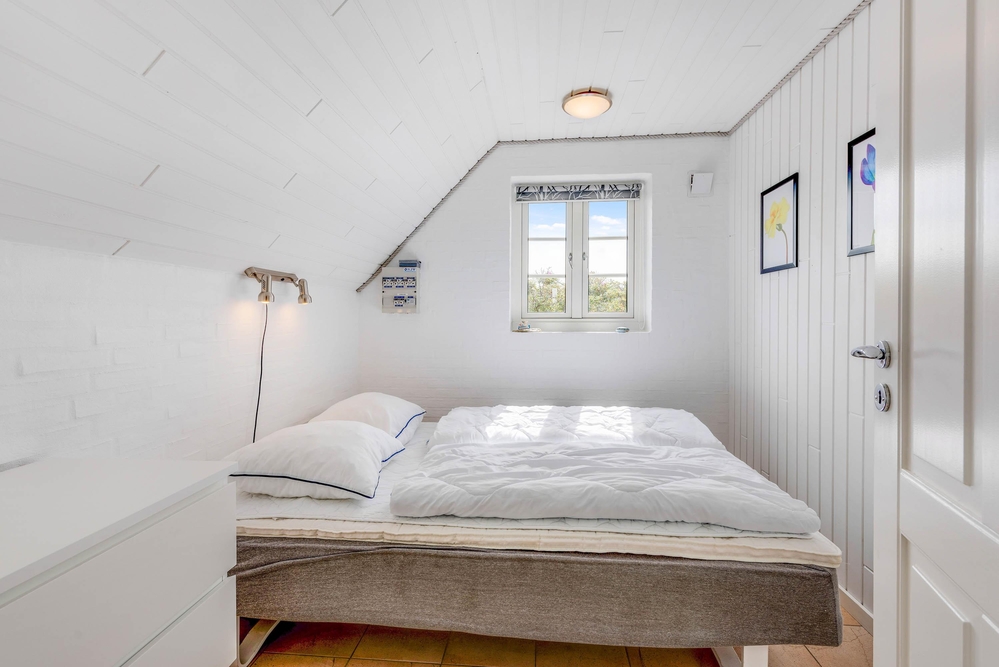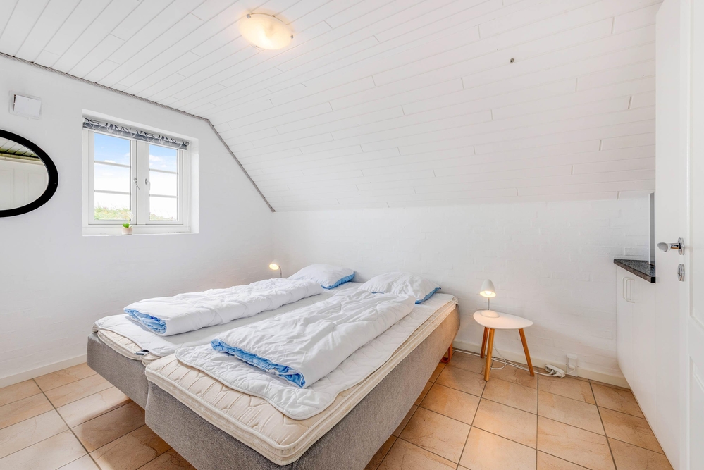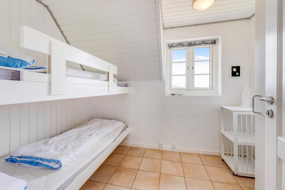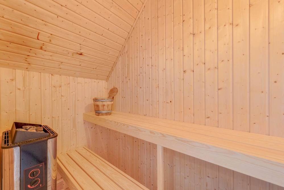 Das Ferienhaus hat 3 geräumige Schlafzimmer mit Fußbodenheizung. Zwei der Schlafzimmer haben Doppelbetten und das dritte hat Etagenbetten für die Kinder. Das Badezimmer wird ebenfalls über eine Fußbodenheizung beheizt und hat eine begehbare Dusche. Hier befindet sich auch der Zugang zur Sauna, in der ihr euch eine kleine Auszeit vom stressigen Alltag nehmen könnt.