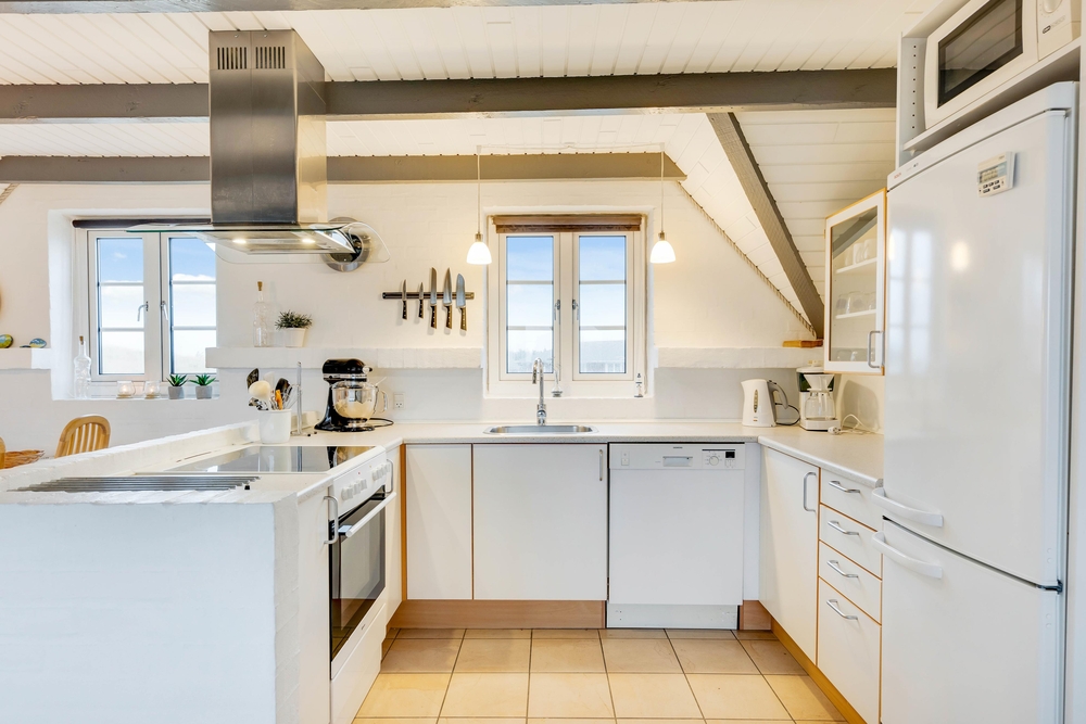 Darüber hinaus ist das Haus mit einem Geschirrspüler und einer Waschmaschine ausgestattet, die dafür sorgen, dass die zeitraubende Hausarbeit leichter von der Hand geht, damit ihr entspannen und den Urlaub genießen könnt. Ein separater Gefrierschrank mit einem Fassungsvermögen von 50 Litern ermöglicht euch die Lagerung von Lebensmitteln. Eine energiesparende Luft-zu-Luft-Wärmepumpe sorgt das ganze Jahr über für ein angenehmes Raumklima.