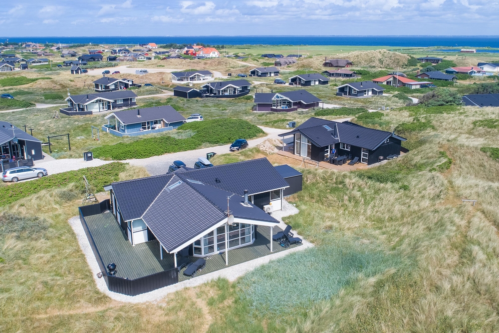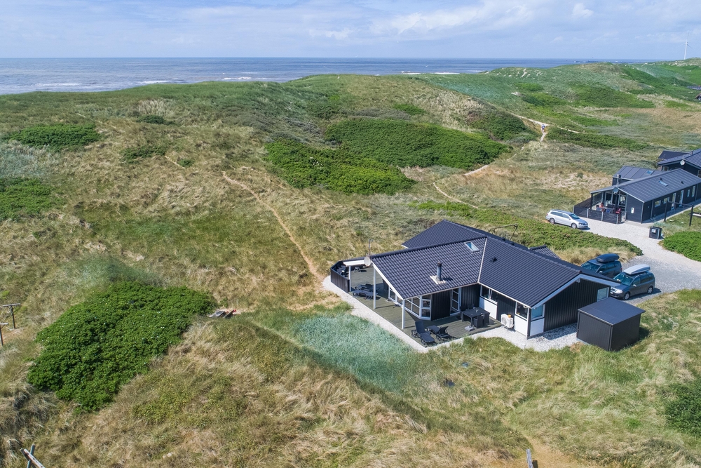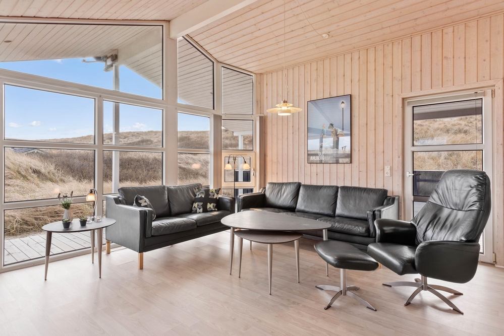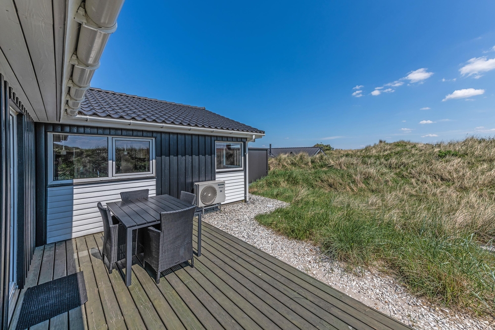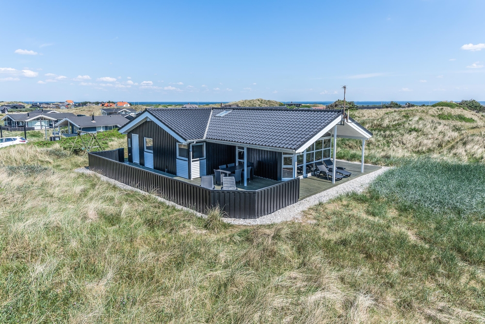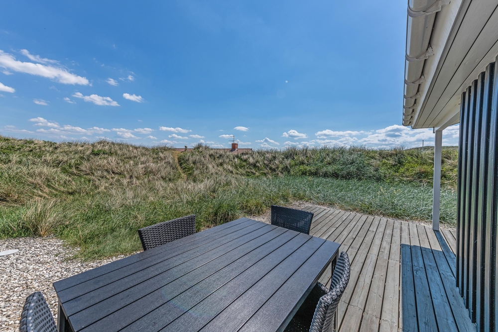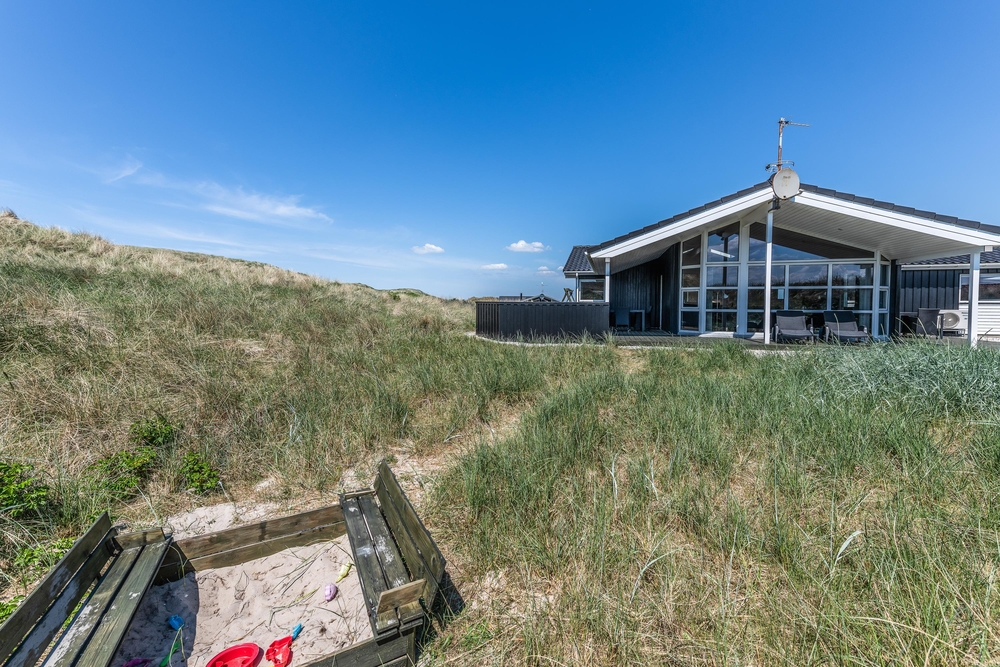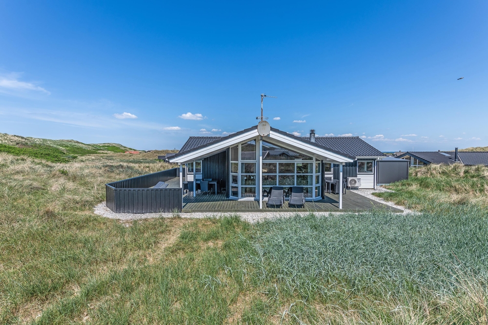 Im Mettes Bjerg 12D liegt dieses fantastische und sehr gepflegte Ferienhaus in prachvoller Lage nur einen Steinwurf vom Strand entfernt. Vom Ferienhaus und der Terrasse hast du einen schönen Blick auf die Dünen. Es erwartet euch hier eine geschmackvolle und helle Einrichtung, große gemütliche Schlafzimmer und zwei schicke Bäder mit Whirlpool und Sauna.