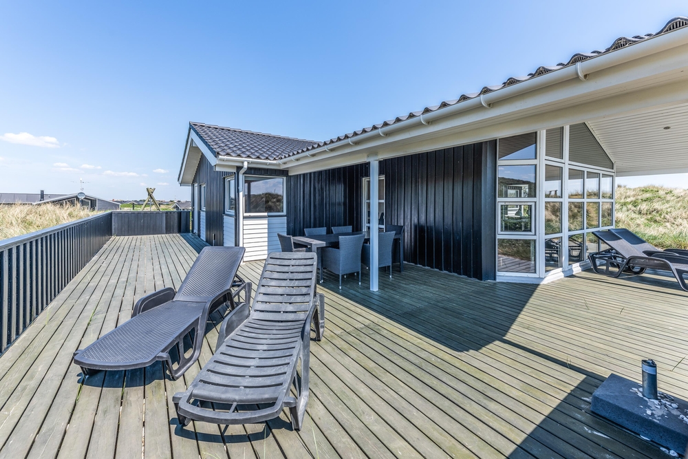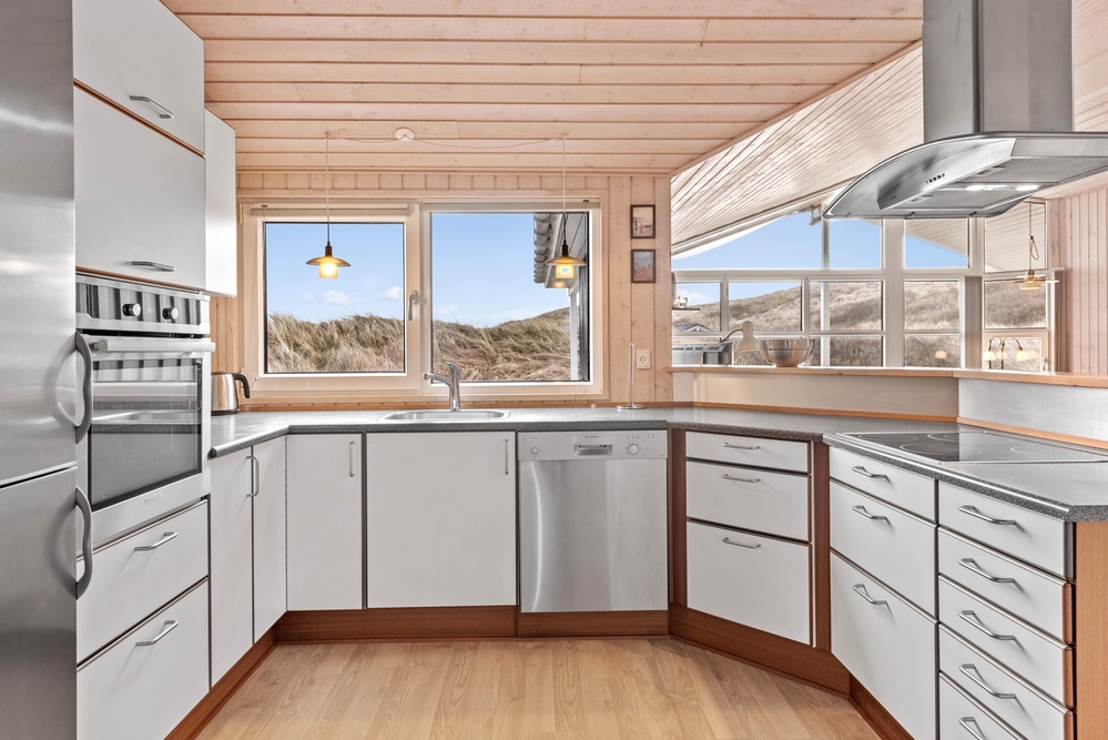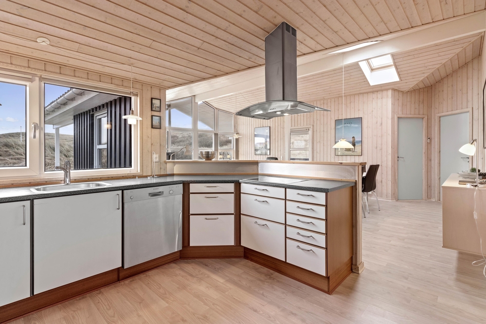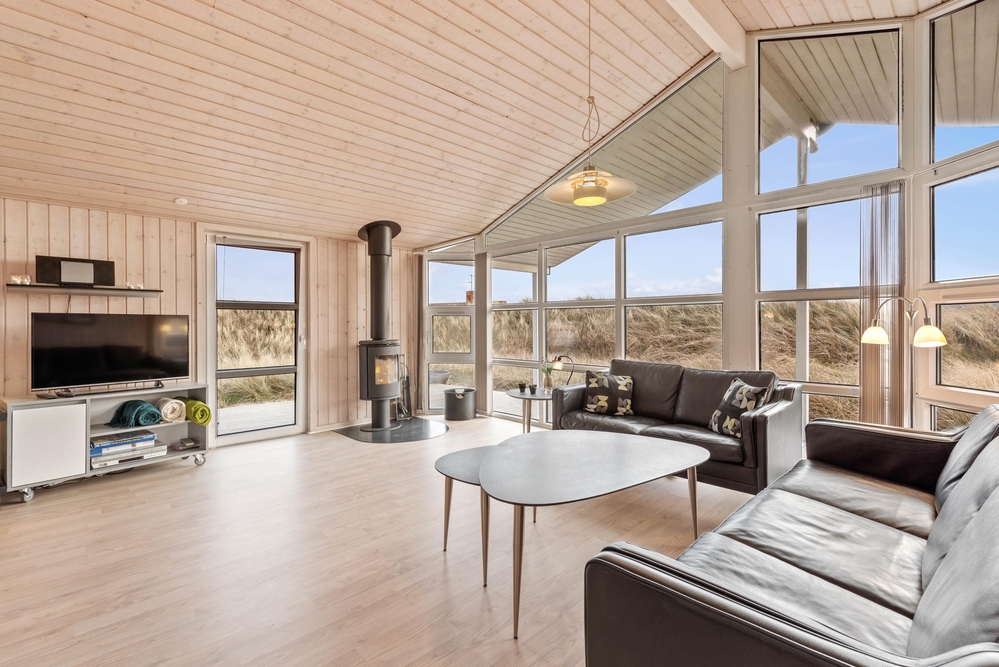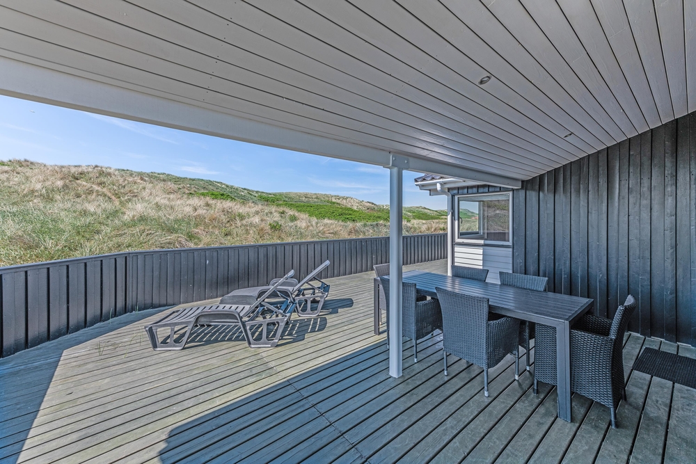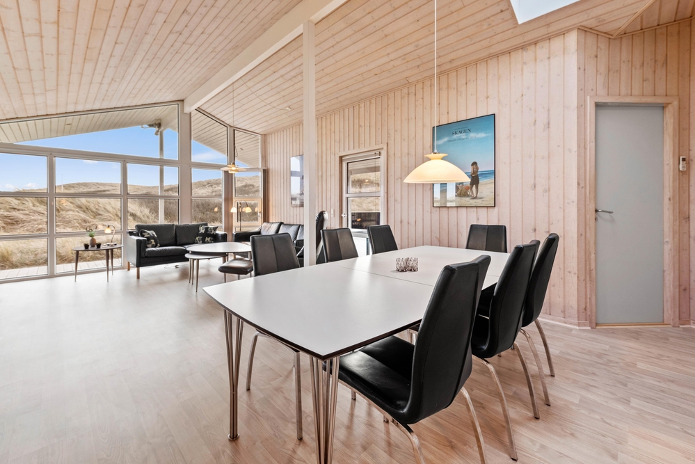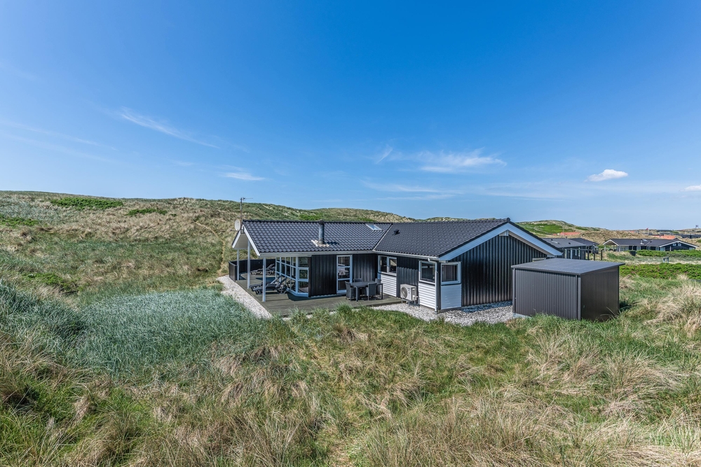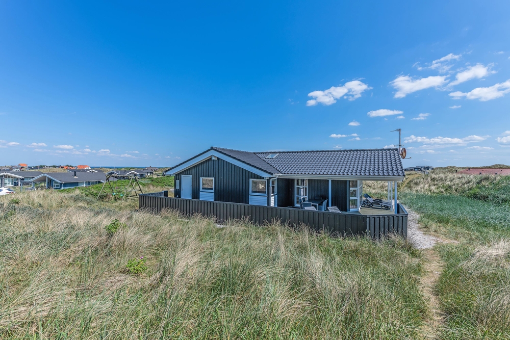 Im Mettes Bjerg 12D liegt dieses fantastische und sehr gepflegte Ferienhaus in prachvoller Lage nur einen Steinwurf vom Strand entfernt. Vom Ferienhaus und der Terrasse hast du einen schönen Blick auf die Dünen. Es erwartet euch hier eine geschmackvolle und helle Einrichtung, große gemütliche Schlafzimmer und zwei schicke Bäder mit Whirlpool und Sauna.