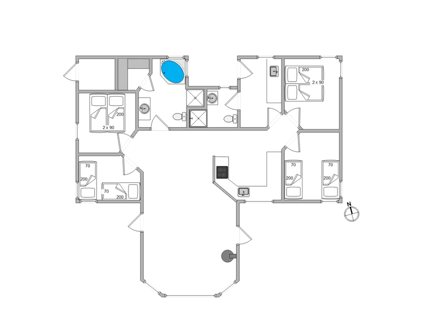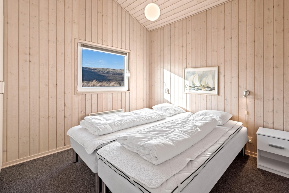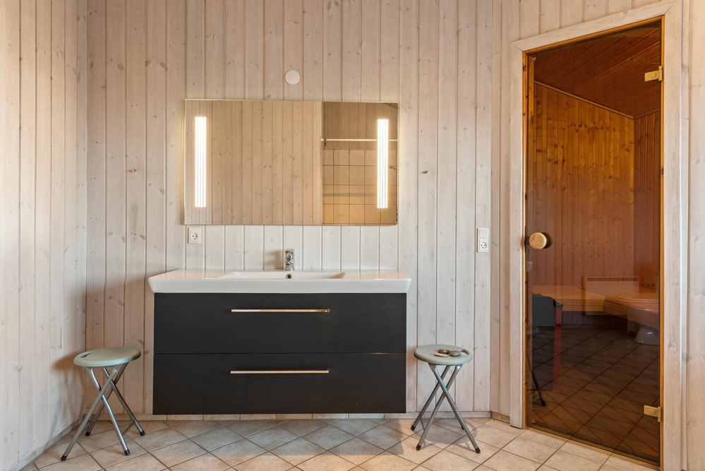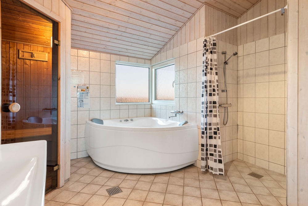 Begebe dich mit Freunden oder der Familie auf die Reise nach Dänemark ? hier im Ferienhaus ist Platz für 8 Personen. Es gibt für euch zwei Schlafzimmer mit Doppelbetten und zwei Zimmer mit je 2 Einzelbetten. In den zwei großen, schicken Badezimmern gibt es Fußbodenheizung. Nach einem langen Tag in der schönen Natur könnt ihr ein Bad im Whirlpool genießen oder in der Sauna entspannen.