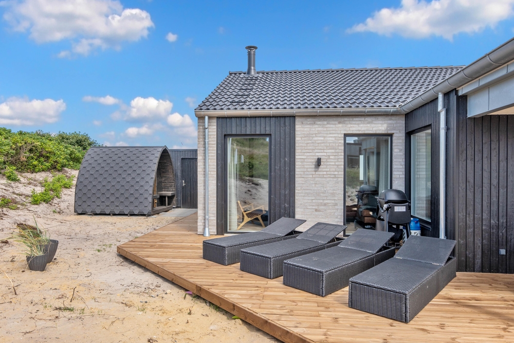 Das im Jahr 2022 erbaute und luxuriøse Ferienhaus bietet euch Platz für bis zu 10 Personen für einen entspannten Aufenthalt an der dänischen Westküste. Das Nichtraucherhaus liegt im Mettes Bjerg 1B im Feriengebiet Årgab direkt bei der gemütlichen Küstenstadt Hvide Sande. Das 180m² große Ferienhaus ist aus den besten Materialien erbaut und überzeugt mit dreilagigen Fenstern, Kaminofen, energiesparender Wärmepumpe 27m² großem Aktivitätsraum. Einem wunderbaren Familienurlaub steht hier nichts im Wege.