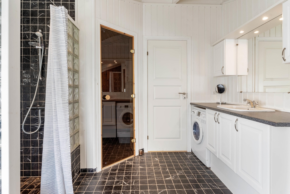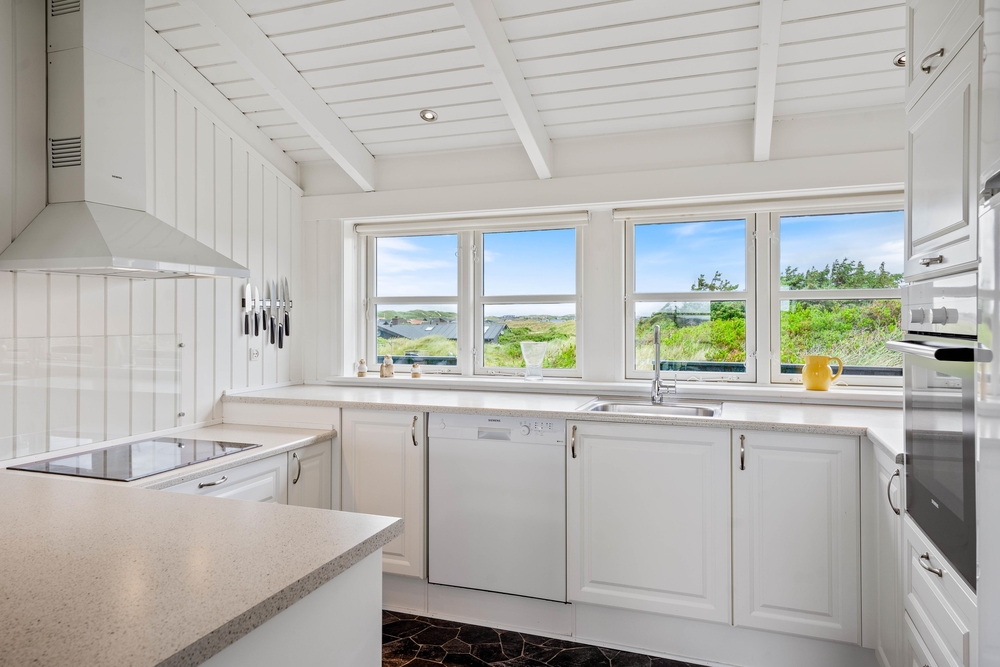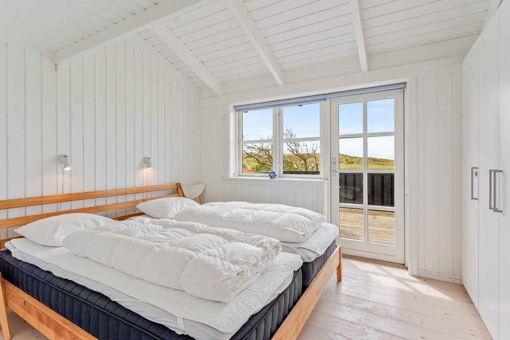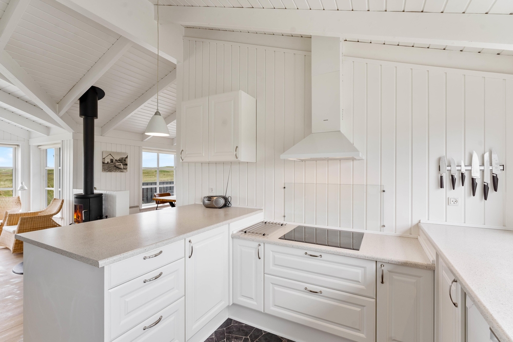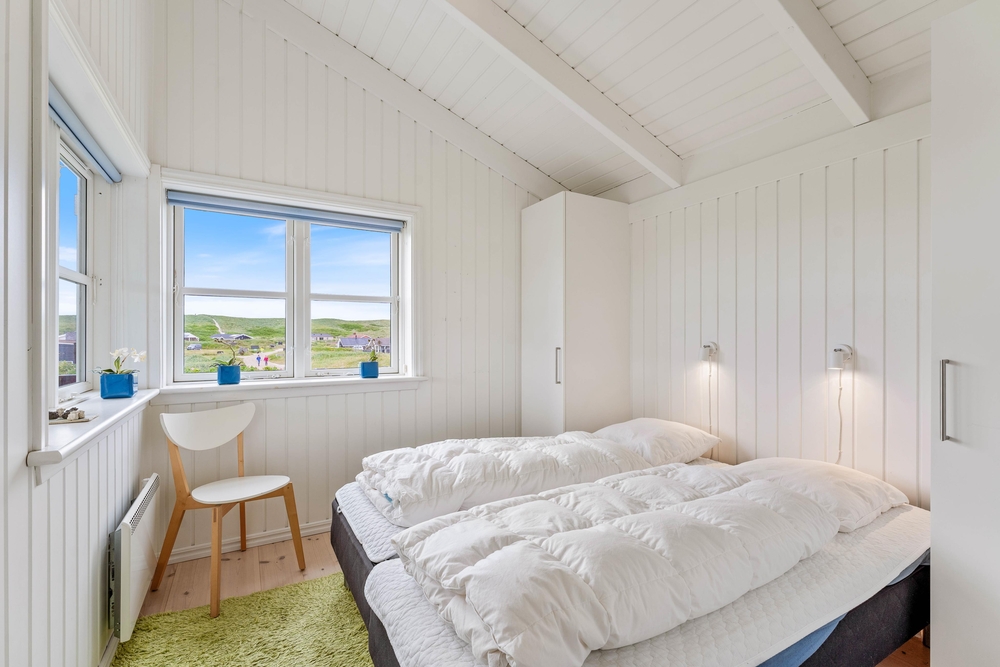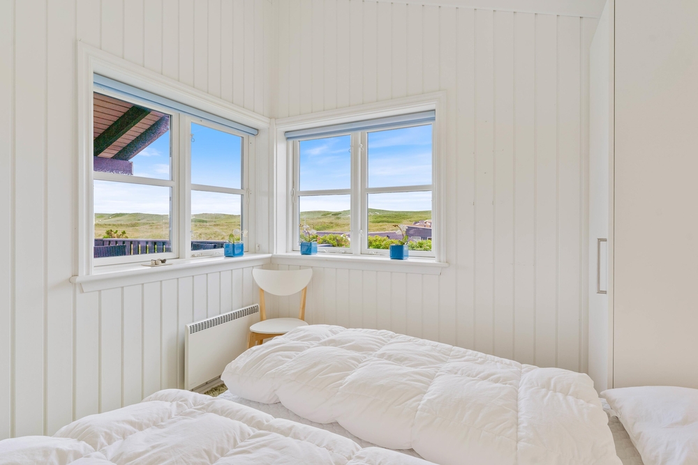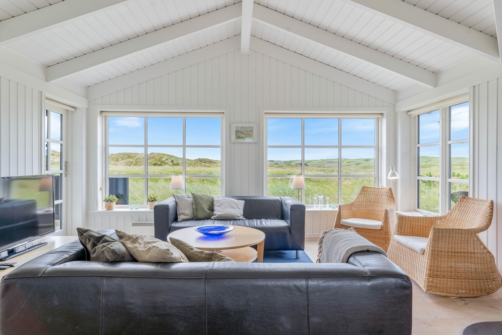 Ein sehr gemütliches und neueres Ferienhaus in Årgab. Das Ferienhaus hat firsthohe, weiße Decken und weiß gestrichene Wänd, zusammen mit der großen Fernsterpartie erscheint das Haus hell und einladend. Die Einrichtung ist sehr geschmackvoll.