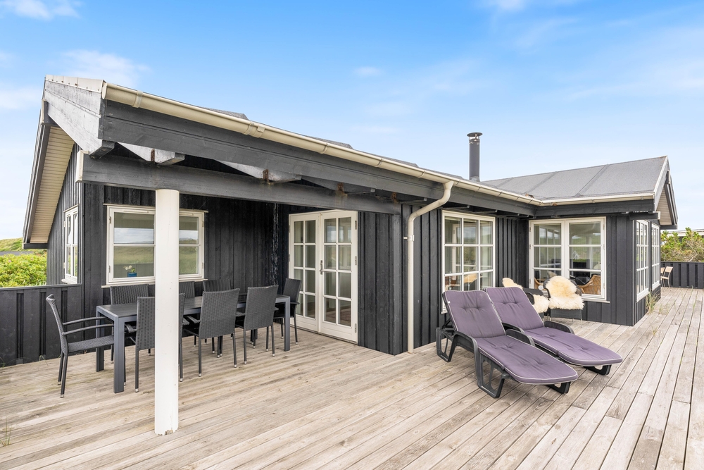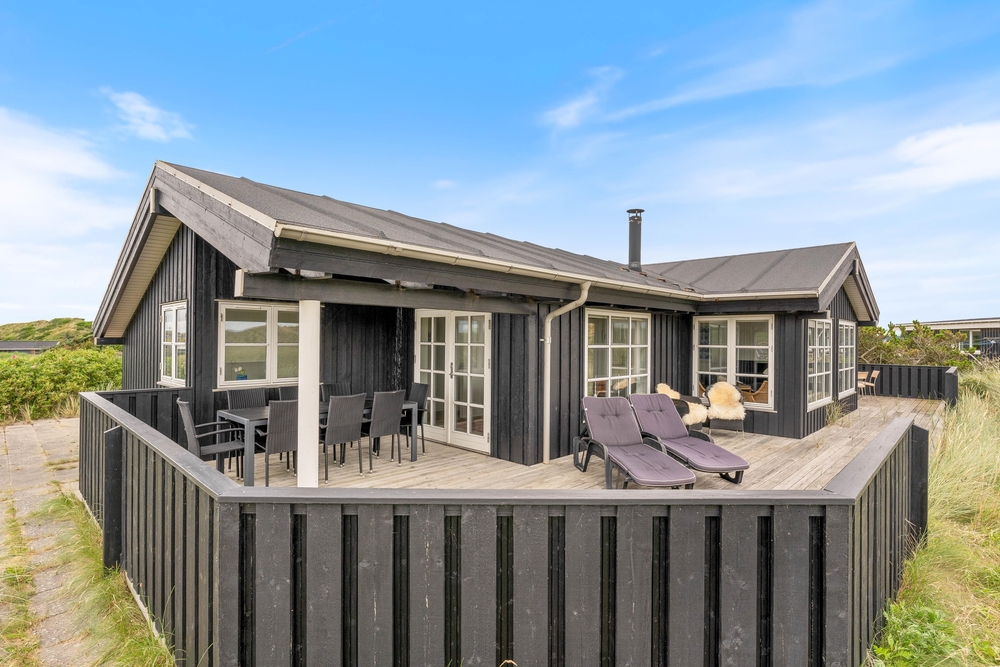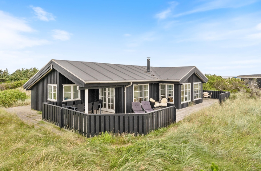Auf einem hügeligem Naturgrundstück, nur einige hundert Meter vom Strand entfernt, liegt dieses fantastisch schöne Luxushaus. Haus und Grundstück bieten eine prächtige Aussicht über die Heide und auf die Dünen. Das Haus bietet jeden erdenklichen Luxus und Komfort; u.a. Whirlpool-Bad und Sauna.