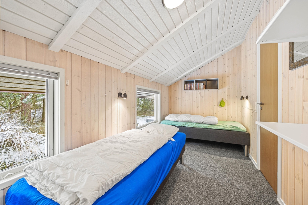 Das Ferienhaus hat zwei schöne Schlafzimmer, eins mit einem Doppelbett und das andere mit zwei Einzelbetten. Hier könnt ihr Euch so richtig ausschlafen, oder Euch mit einem spannenden Buch zurückziehen und die Ruhe genießen.