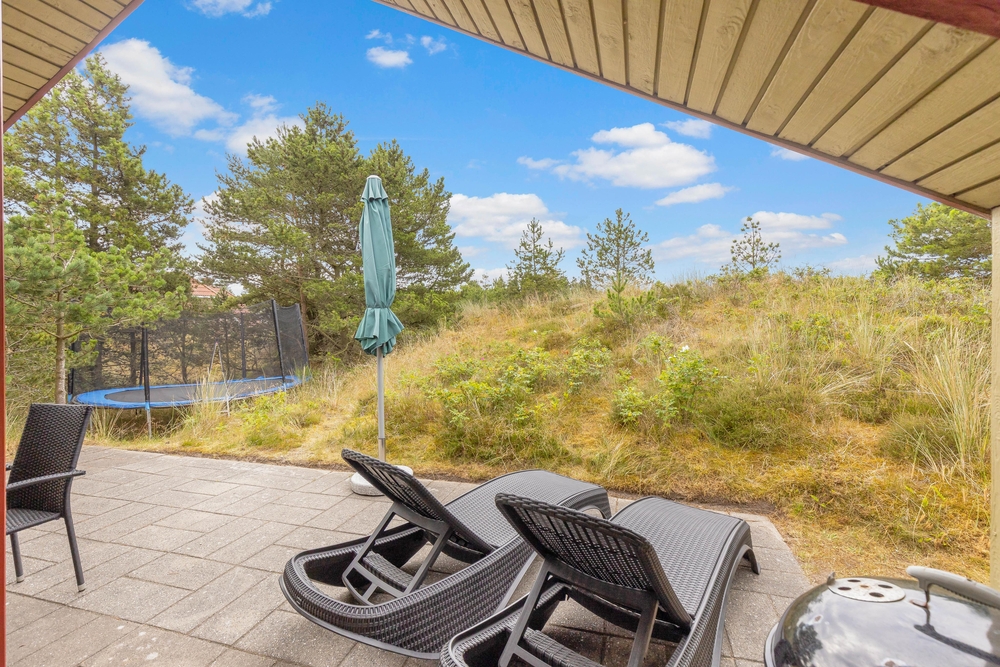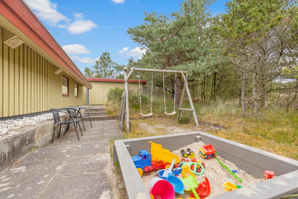 Das eingewachsene Naturgrundstück im Midtbyvej 3, bietet viel Platz und Natur in der sich Eure Kinder frei bewegen können. Auf dem Trampolin darf laut gelacht und getobt werden. Schaukel und Sandkiste gibt es auch noch zum Spielen.
