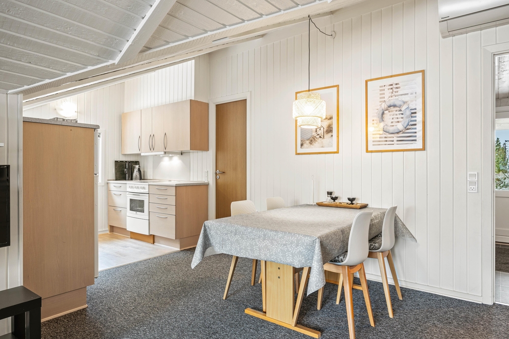 Die Küche mit offenem Wohn- Essbereich sind das Herz des Hauses, in dem Ihr gemütliche Ferienstunden miteinander verbringen könnt. Gemeinsam das Abendessen vorbereiten bringt doch gleich viel mehr Spaß. Plant einen Spiele- oder Filmeabend, oder genießt einfach nur die Ruhe vor dem knisternden Feuer im Kaminofen. In Dänemark halten Euch keine Verpflichtungen oder Termine davon ab, eine harmonische Zeit mit der Familie zu verbringen.