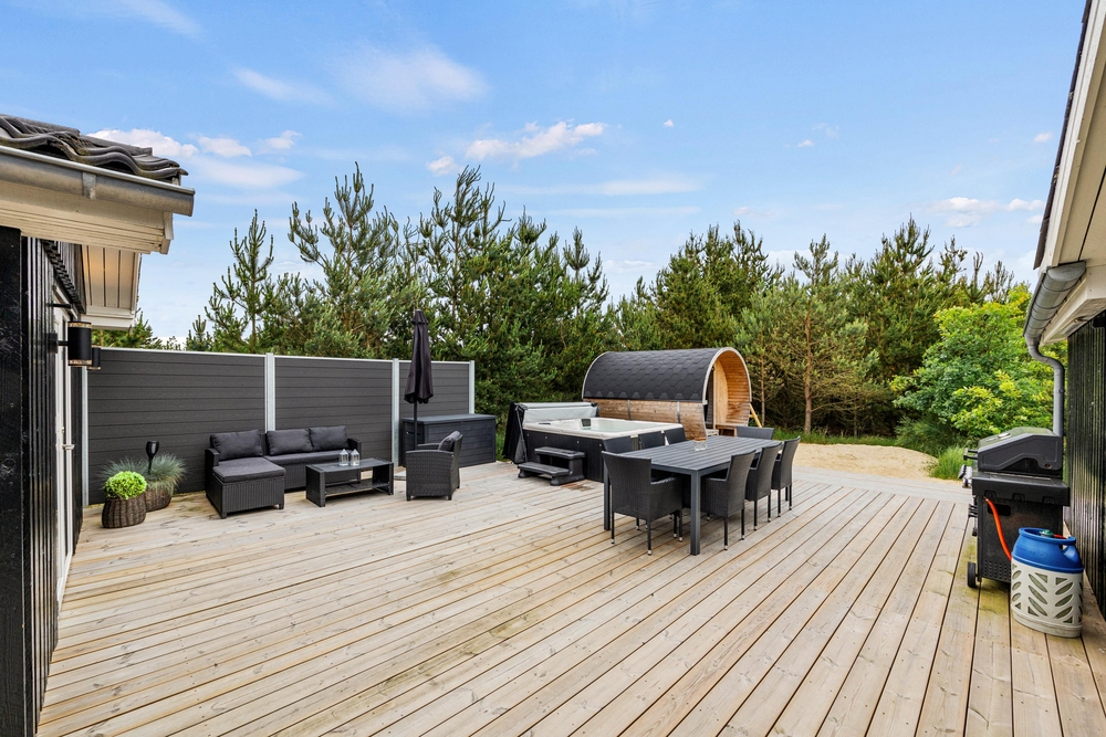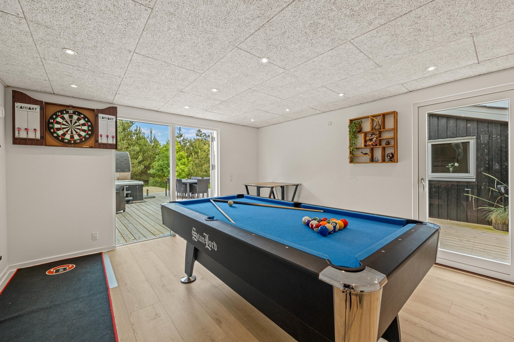 Der Luxus beschränkt sich jedoch nicht nur auf die Schlafzimmer. Unser Ferienhaus in Blåvand ist mit mehreren Annehmlichkeiten ausgestattet, die ihren Urlaub zu einem schönen Erlebnis machen. In unserem spielfreudigen Aktivitätenhaus könnt ihr euch auf eine Partie Poolbillard freuen, oder euch in dem einladenden Außenspa und Sauna entspannen.
