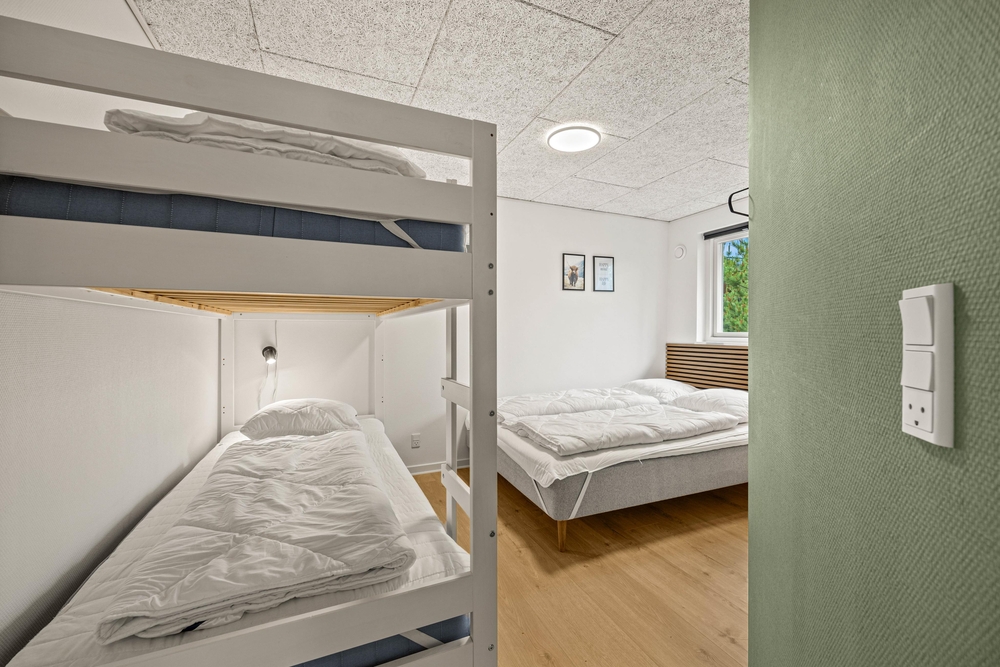 In diesem modern und stilvoll eingerichteten Ferienhauses findet ihr alles, was ihr für den gehohlsamen Urlaub braucht. Mit vier großzügigen Schlafzimmern, ausgestattet mit drei Doppelbetten ? das eine auch mit Etagenbatt ? und zwei Einzelbetten, bietet dieses Haus genügend Platz für alle. Der geräumige Wohnbereich lädt nach einem Tag gespickt mit Abenteuern in der freien Natur zum gemütlichen Beisammensein ein.
