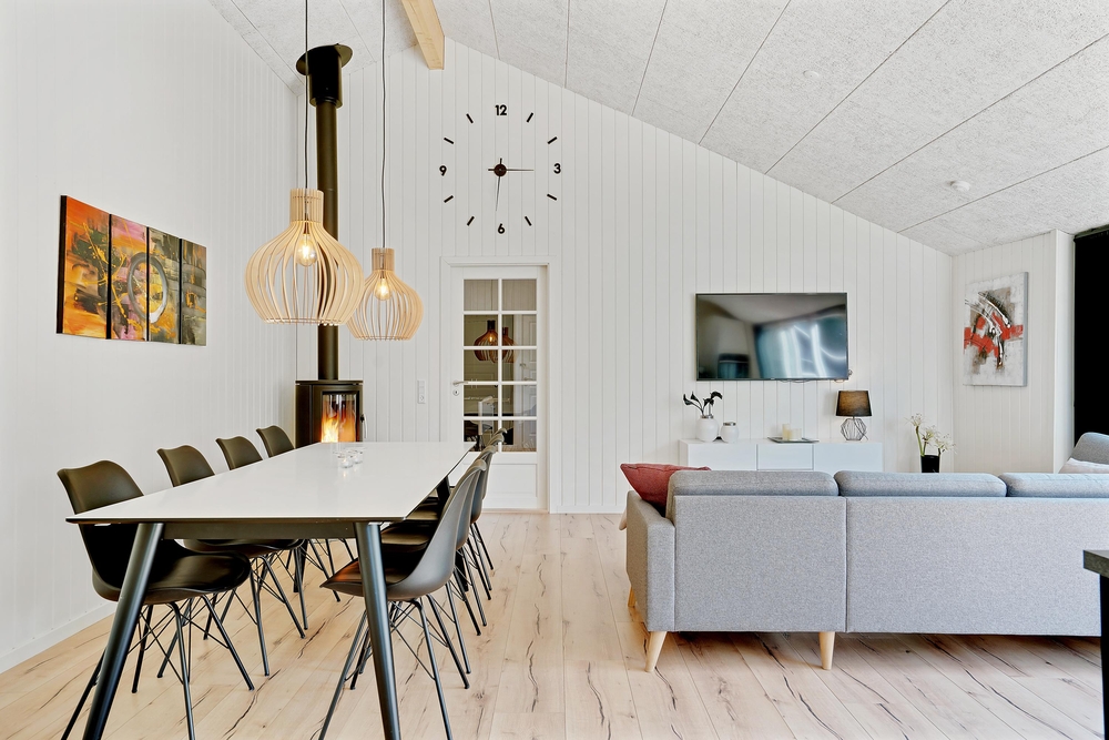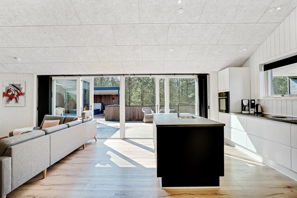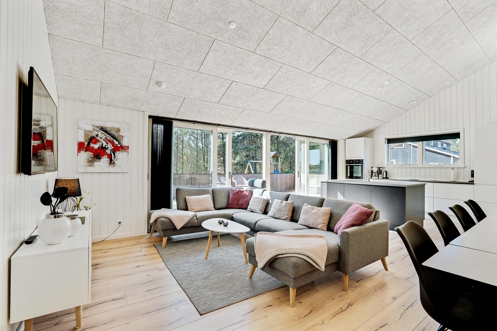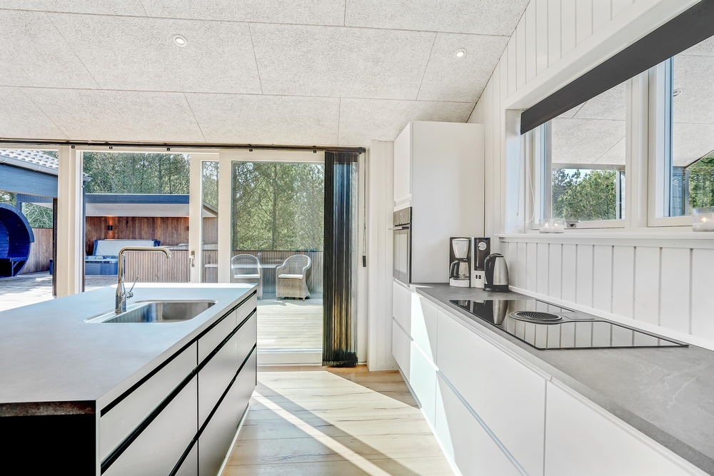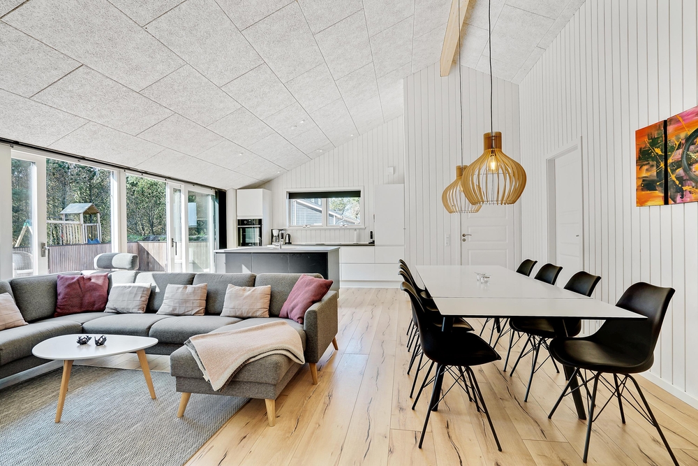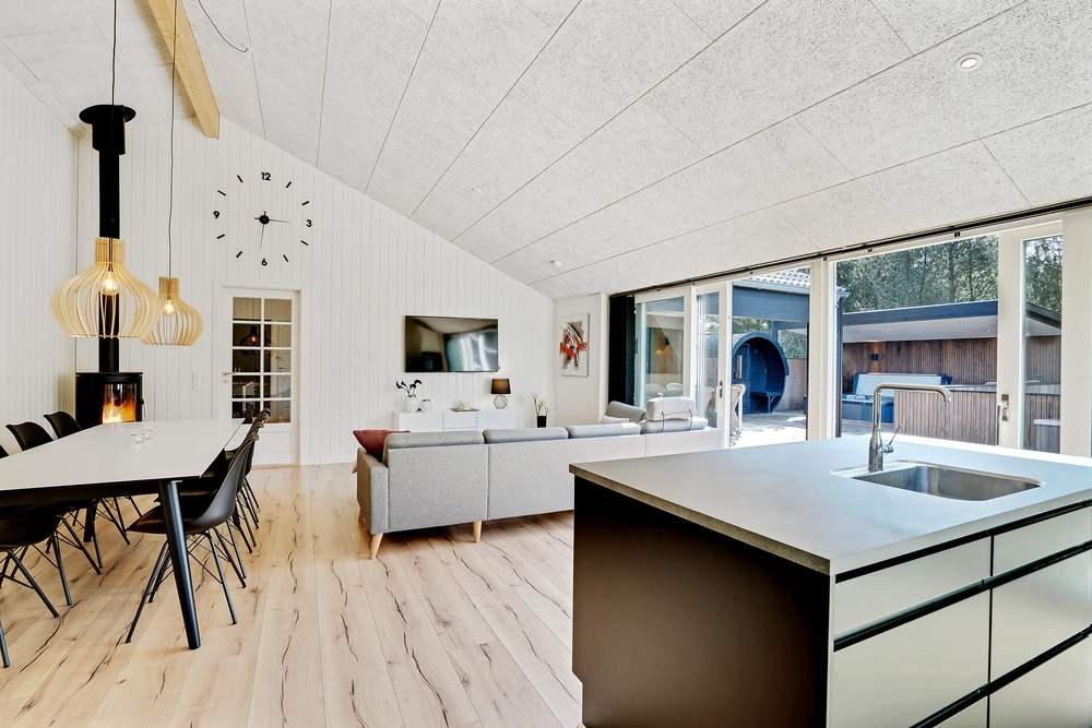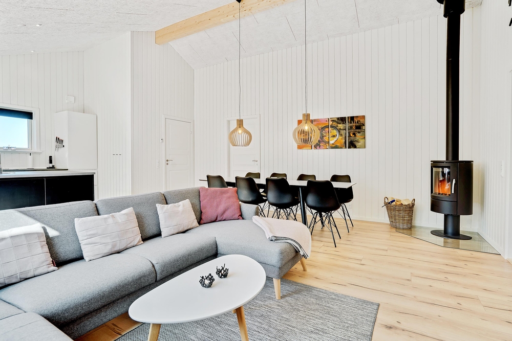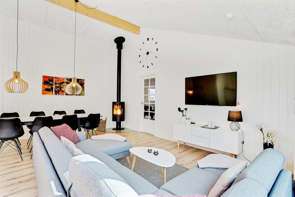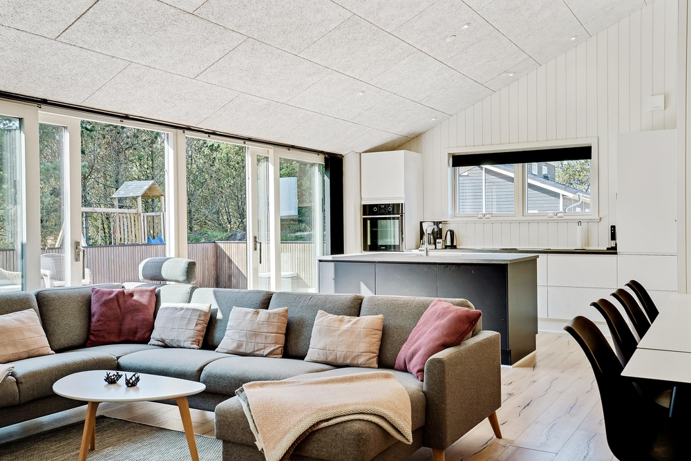 Das Luxusferienhaus in Blåvand wurde 2018 gebaut und es wurde viel Wert auf die Details gelegt. Das Dekor ist stilvoll und modern mit hellen Farben und feinen Details, die eine gemütliche Urlaubsatmosphäre schaffen. Die großen Fenster lassen viel Licht und die Sonnenstrahlen ins Innere.