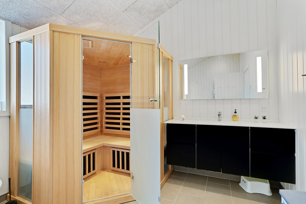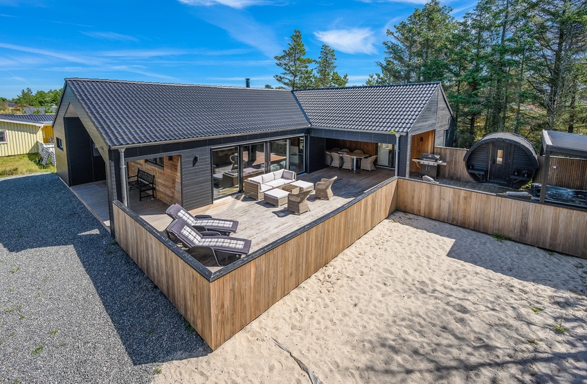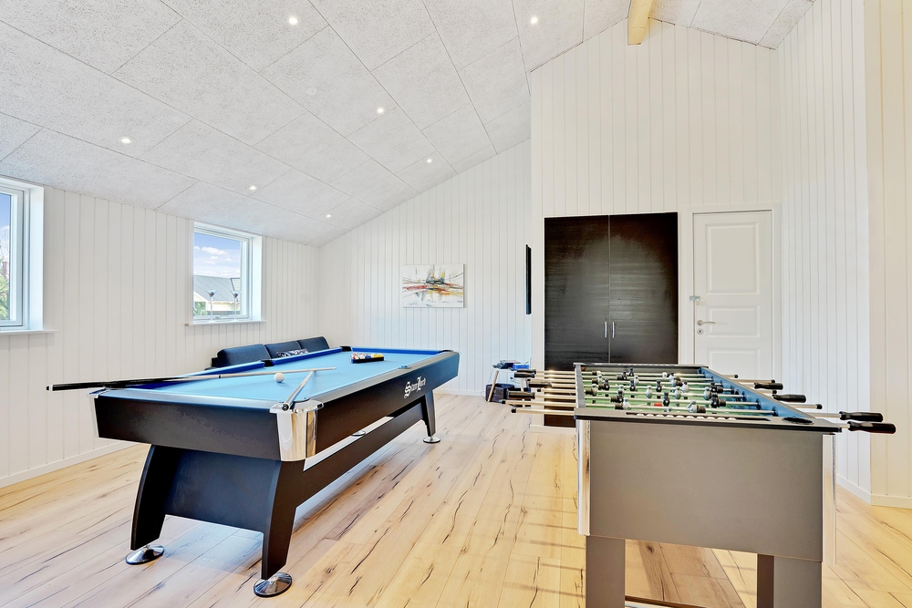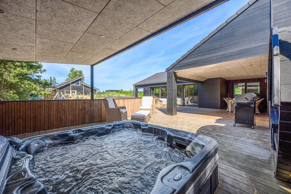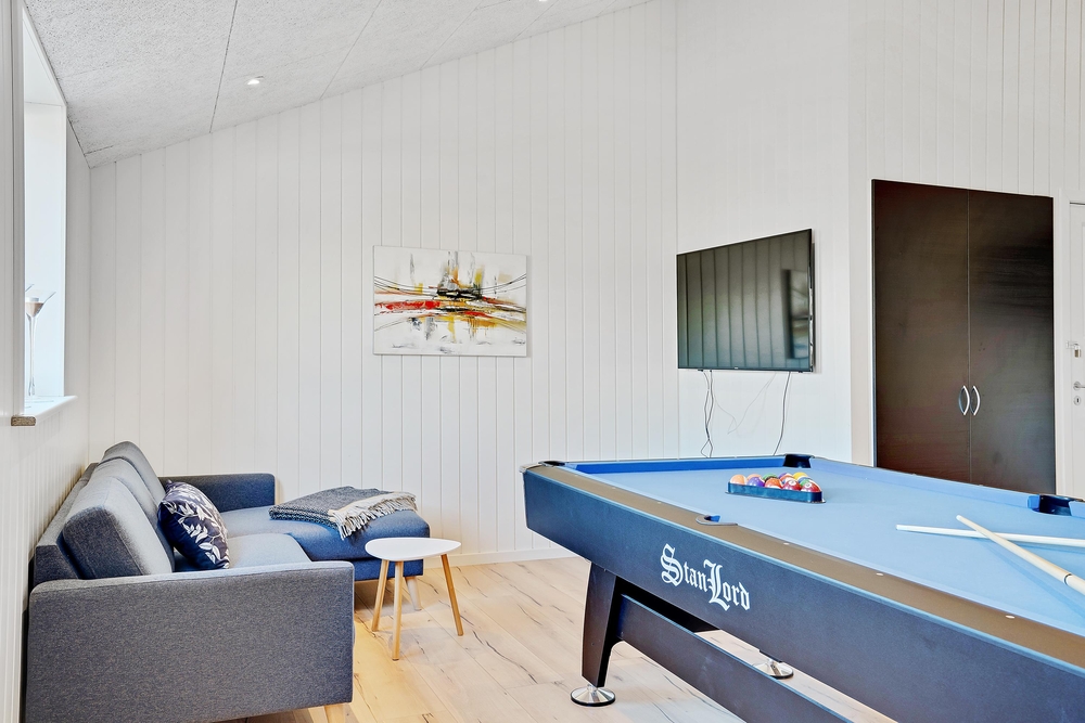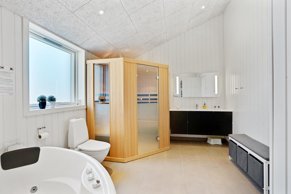 Dieser wunderschöne Urlaubstraum am Midtbyvej 9 A hat Alles, was das Herz begehrt ? und noch mehr. Das luxuriöse Ferienhaus ist hell und schön eingerichtet und verfügt über 2 Saunen, einen Whirlpool, einen Whirlpool im Freien und einen Aktivitätsraum. Die große Terrasse hat viele schöne Plätze und eine überdachte Lounge.