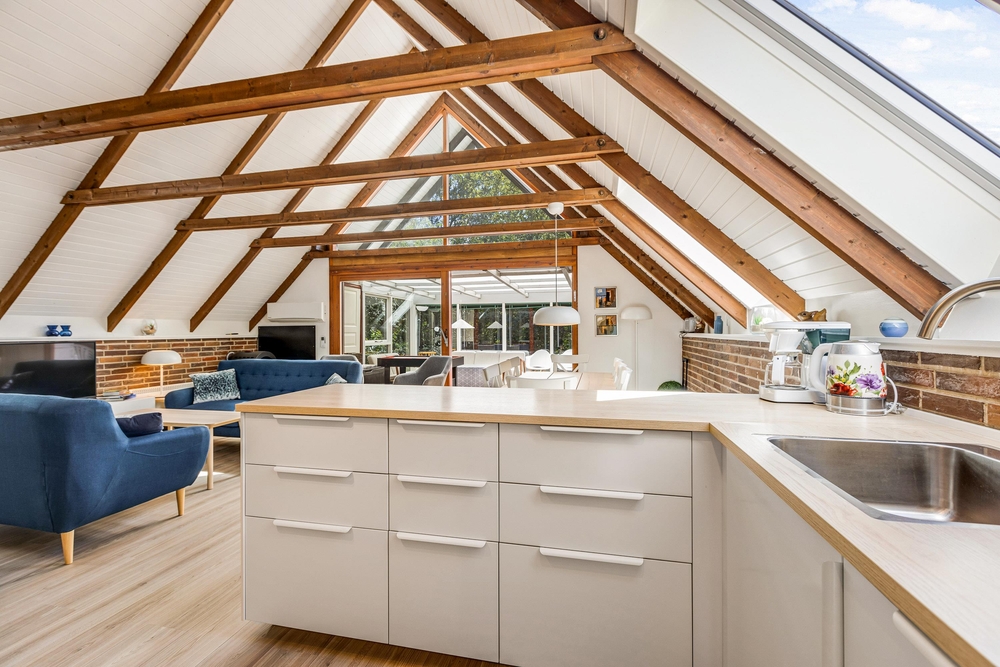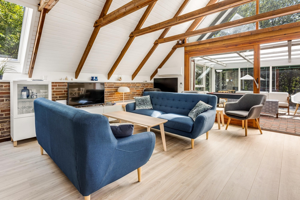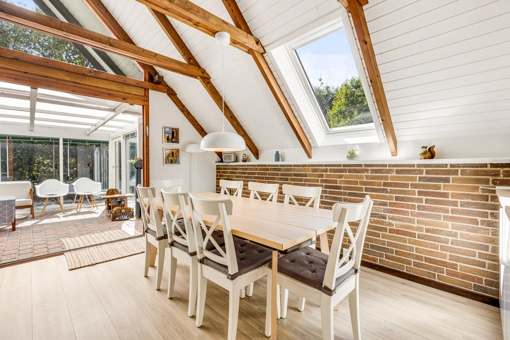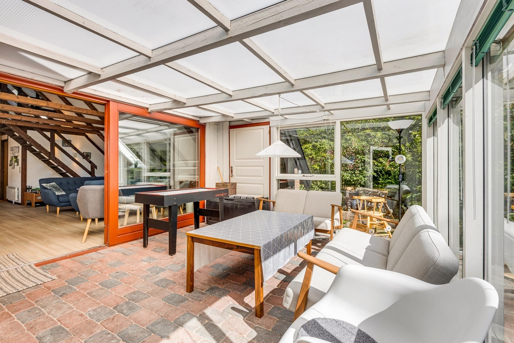 Dieses einladende Ferienhaus wurde im Jahr 2020 in einem hellen und einladenden, modernen Einrichtungsstil renoviert, in dem Komfort und Gemütlichkeit Hand in Hand gehen. Licht durchflutet das gesamte Domizil, in dem der Blick auf die Holzsparren im Dach fällt, welches den Raum besonders gemütlich macht. Der Wintergarten ist eine natürliche Fortsetzung des Wohnzimmers und der Küche.