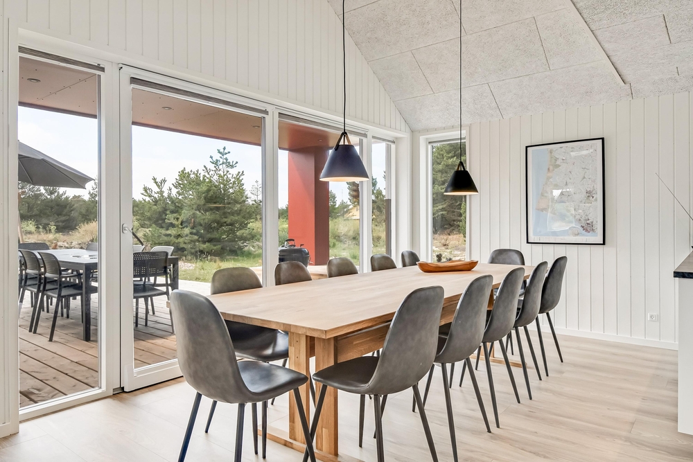 In Møllehusvej 30a in Blåvand erwartet euch dieses schöne Ferienhaus. Das Haus wurde 2018 gebaut und bietet Platz für bis zu 10 Personen. Die stilvolle Einrichtung bietet alles, was das Urlauberherz begehrt ? von Wellness mit Whirlpool und Sauna bis hin zu Spiel und Spass am Billardtisch. Der Energieverbrauch ist im Preis inklusive!